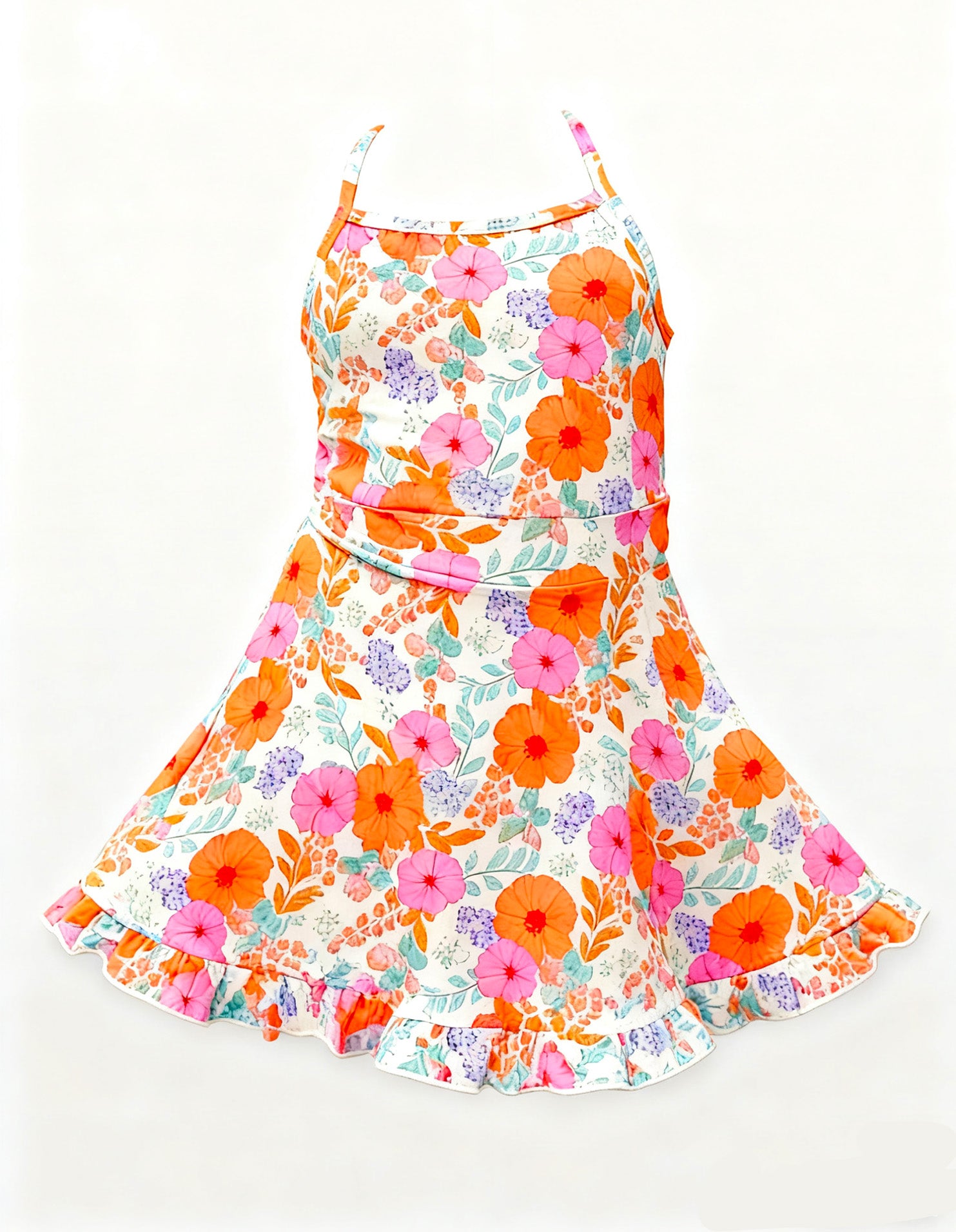(Pre Order) No moq GSD3054 PRE-ORDER baby girl clothes yoga floral sleeveless dress-2025.11.5