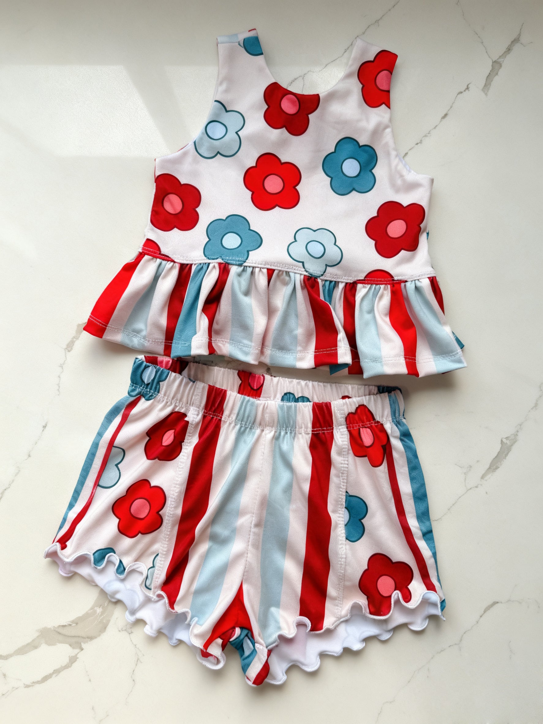 (Pre Order) No moq GSSO2893 Pre-order baby girl clothes floral suspender shorts sets-2025.11.15