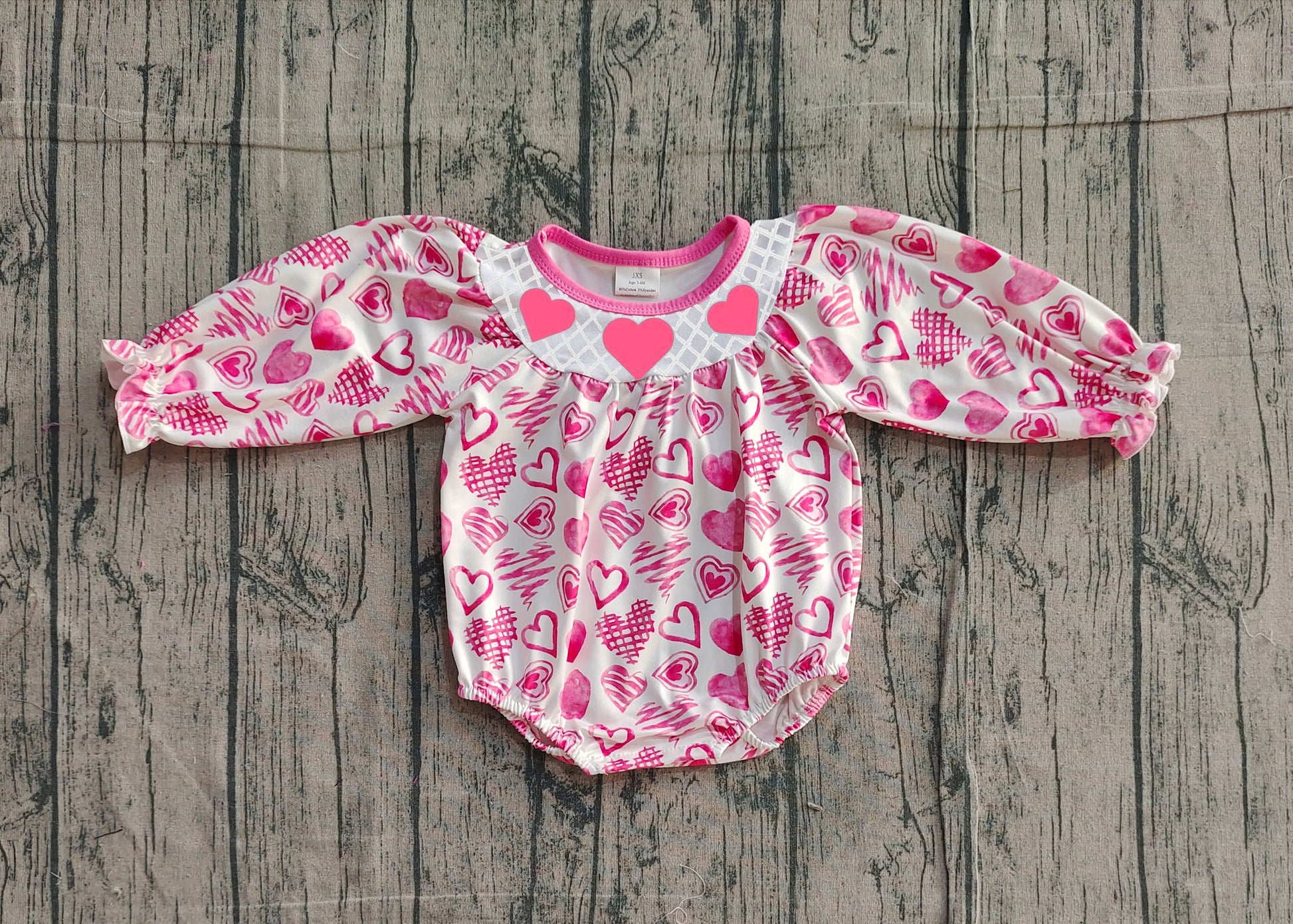 (Pre Order) No moq LR2767 pre-order baby girl clothes embroidery love pink long sleeve romper-2025.11.25