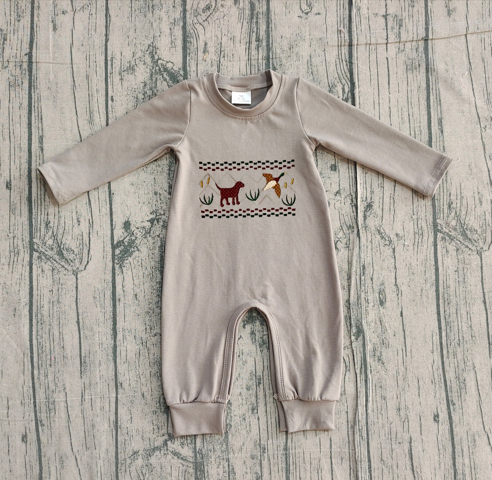 (Pre Order) No moq pre-order baby boy clothes embroidery puppy duck long sleeve romper-2025.11.30