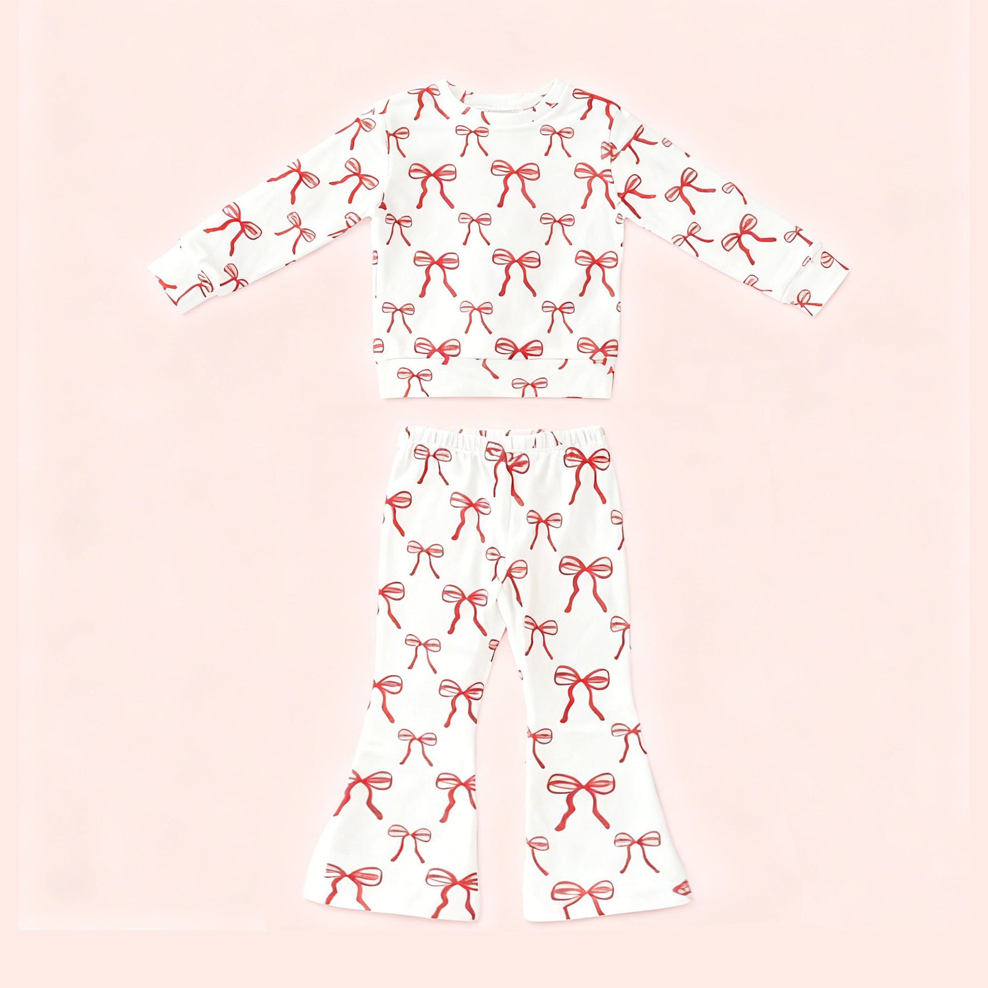 (Pre Order) No moq Pre-order baby girl clothe bow long sleeve pants sets-2025.11.27