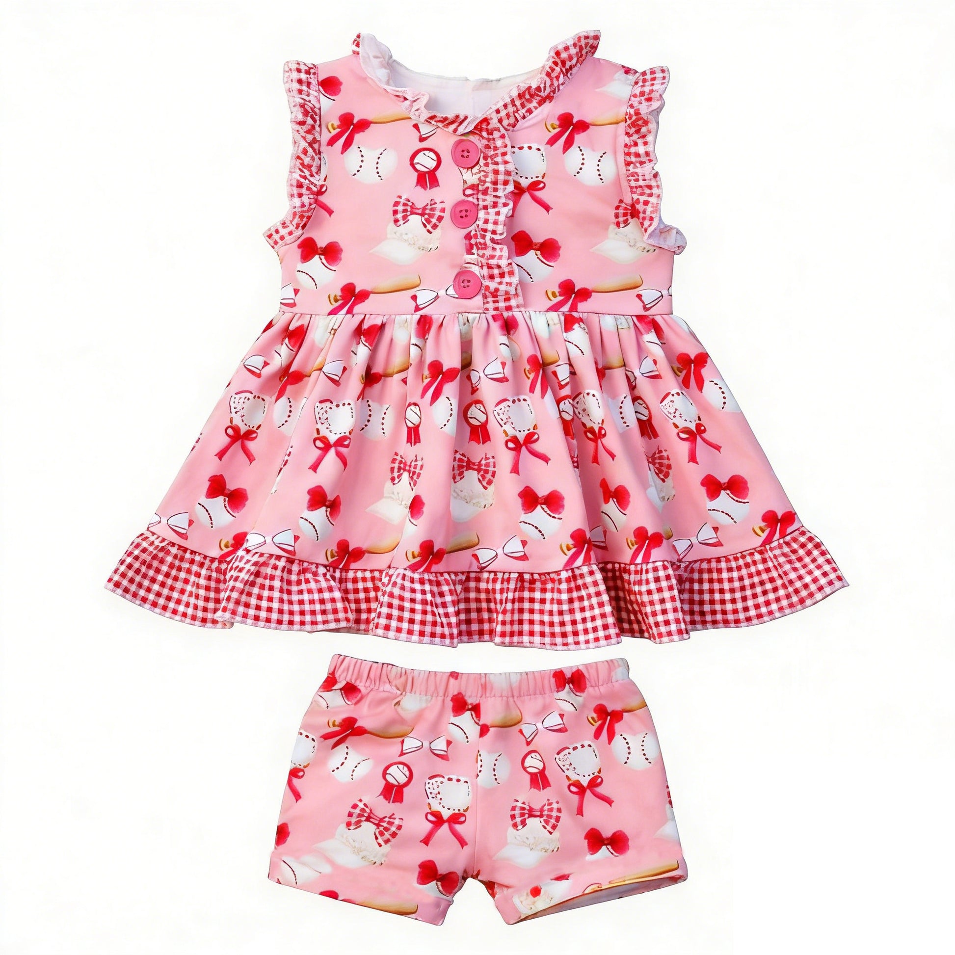 (Pre Order) No moq Pre-order baby girl clothes baseball bow sleeveless shorts sets-2025.12.26