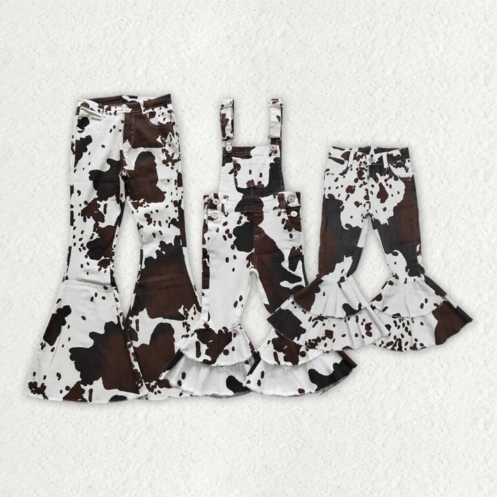 RTS NO MOQ Adults women and Baby Girls coe pattern denim flared pants