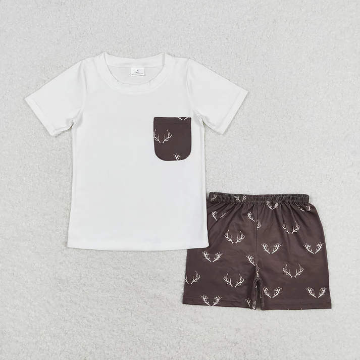 RTS NO MOQ Baby Boys Summer Sibling Brother Deer Rompers Clothes Sets