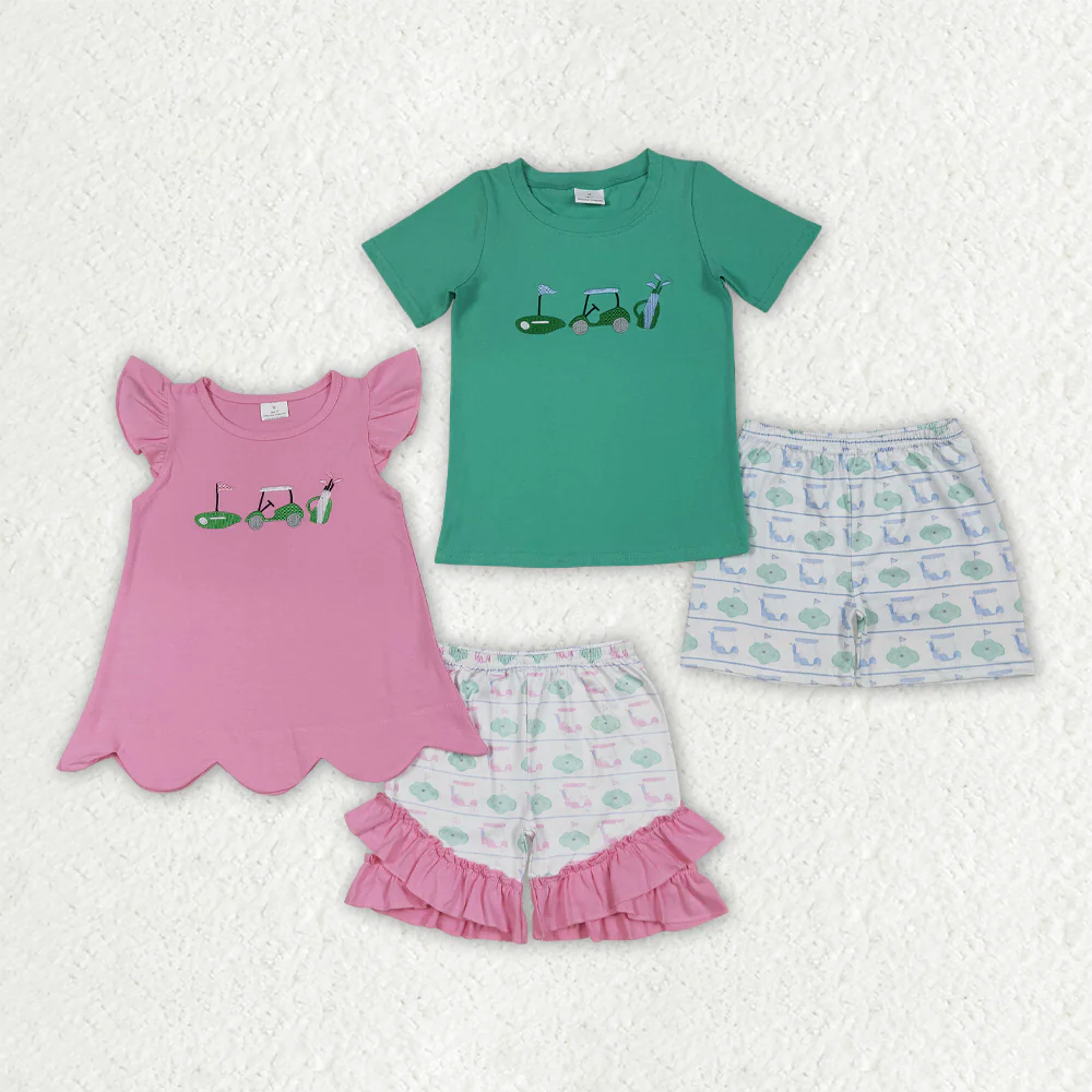 RTS NO MOQ baby girls boys Clothes embroidery short sleeve shorts Sets