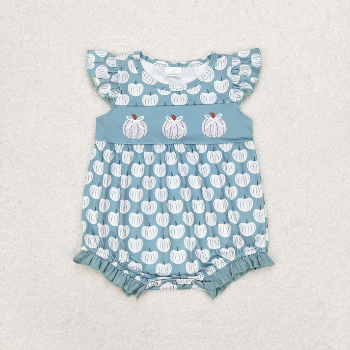 RTS NO MOQ Baby Girls Green Flutter Sleeve Pumpkins Sibling Clothes Sets