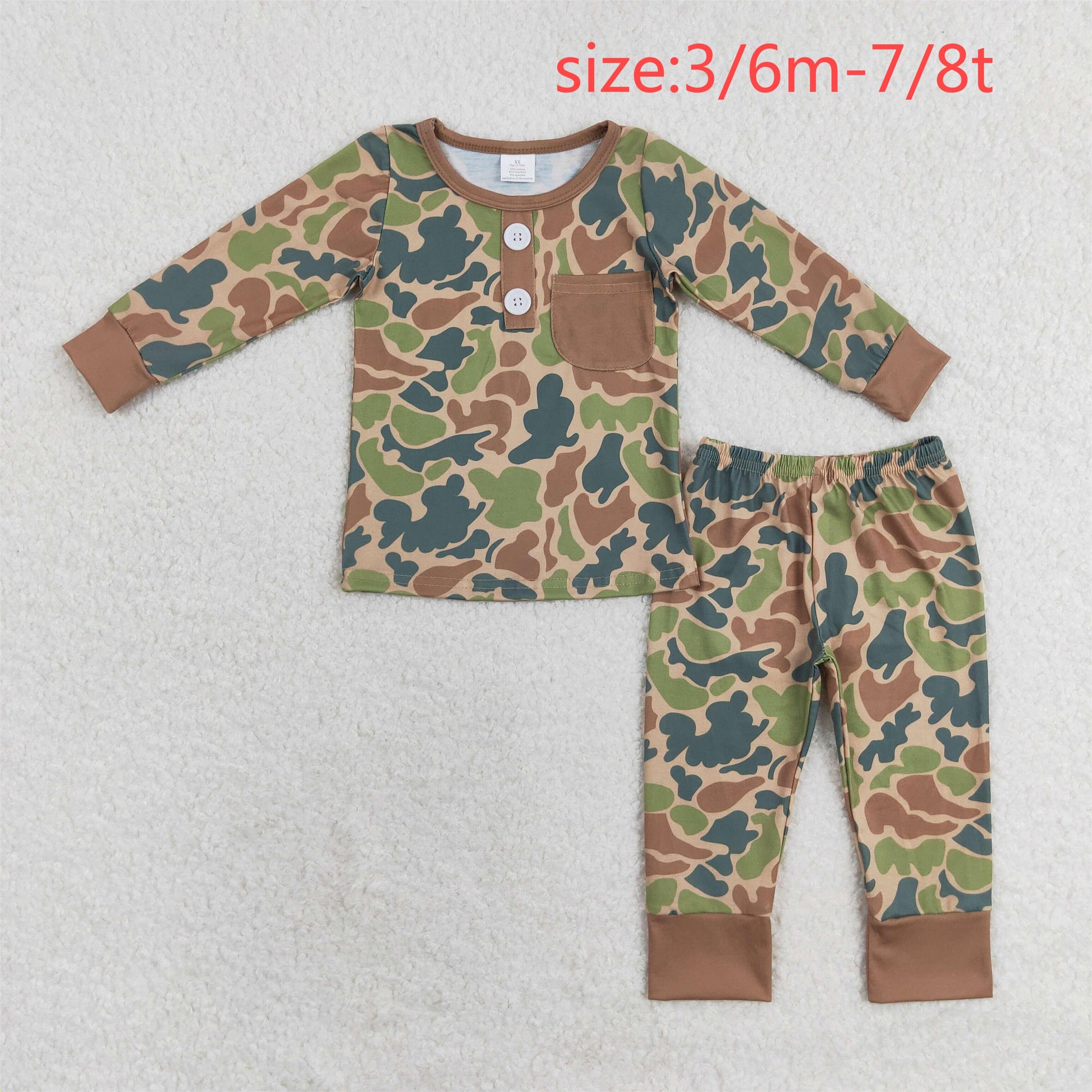 bamboo rts no moq BLP0580 Modal brown-green camouflage pocket long-sleeved trousers pajama set