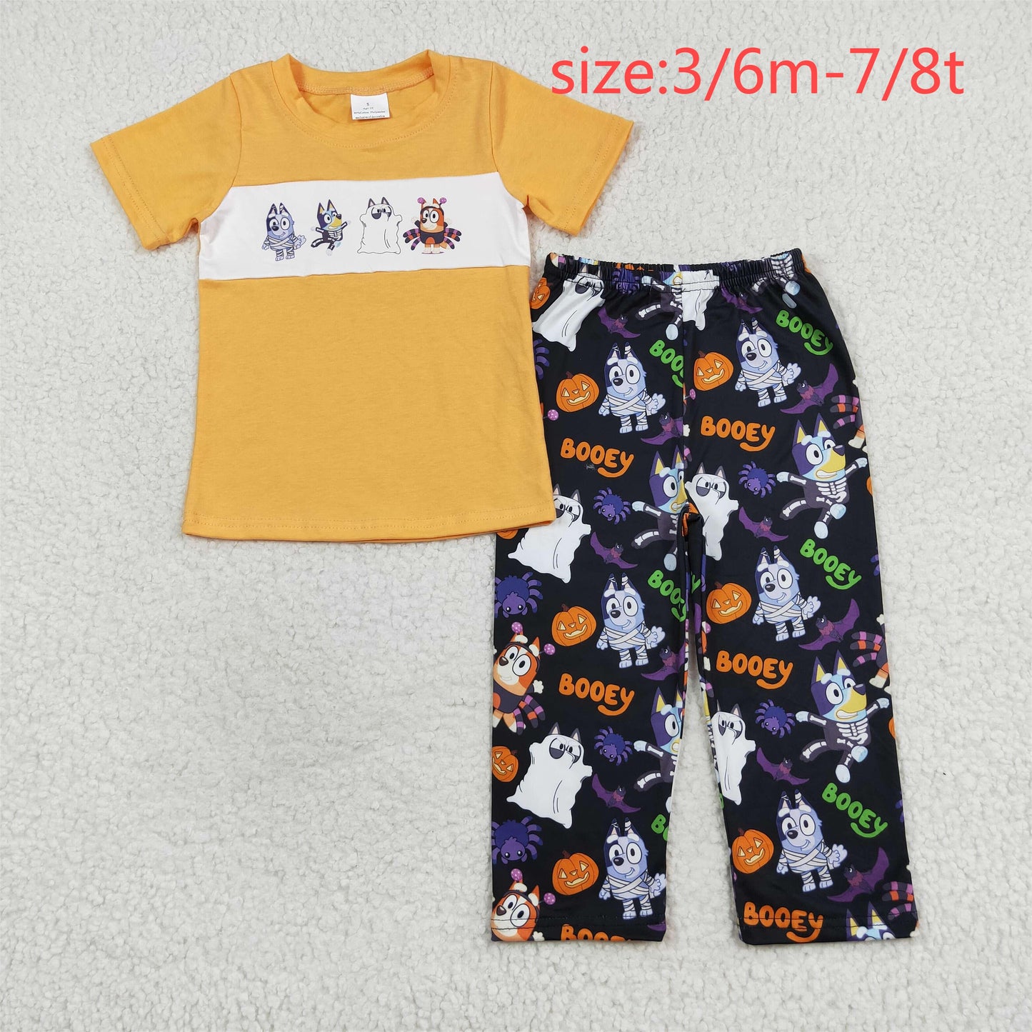 RTS NO MOQ BSPO0406 bluey Halloween spider pumpkin lantern orange short-sleeved trousers suit