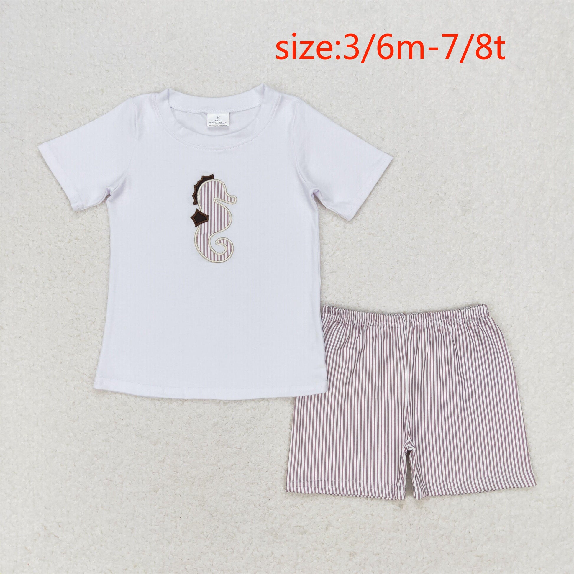 rts no moq BSSO0837 Embroidered seahorse white short-sleeved striped shorts suit