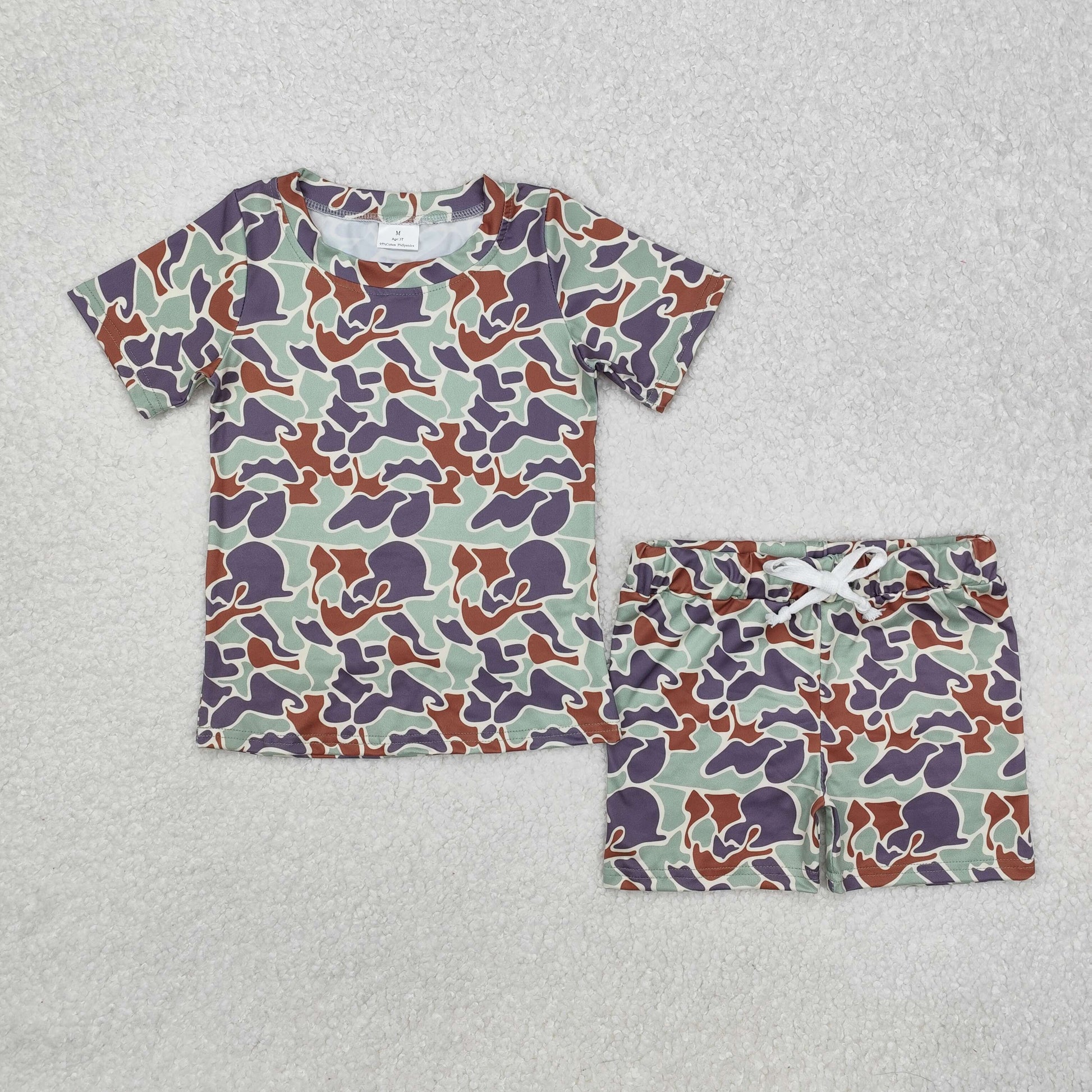 RTS NO MOQ Camouflage short sleeve shorts set & baby blanket and jumpsuit and adult top and kids top