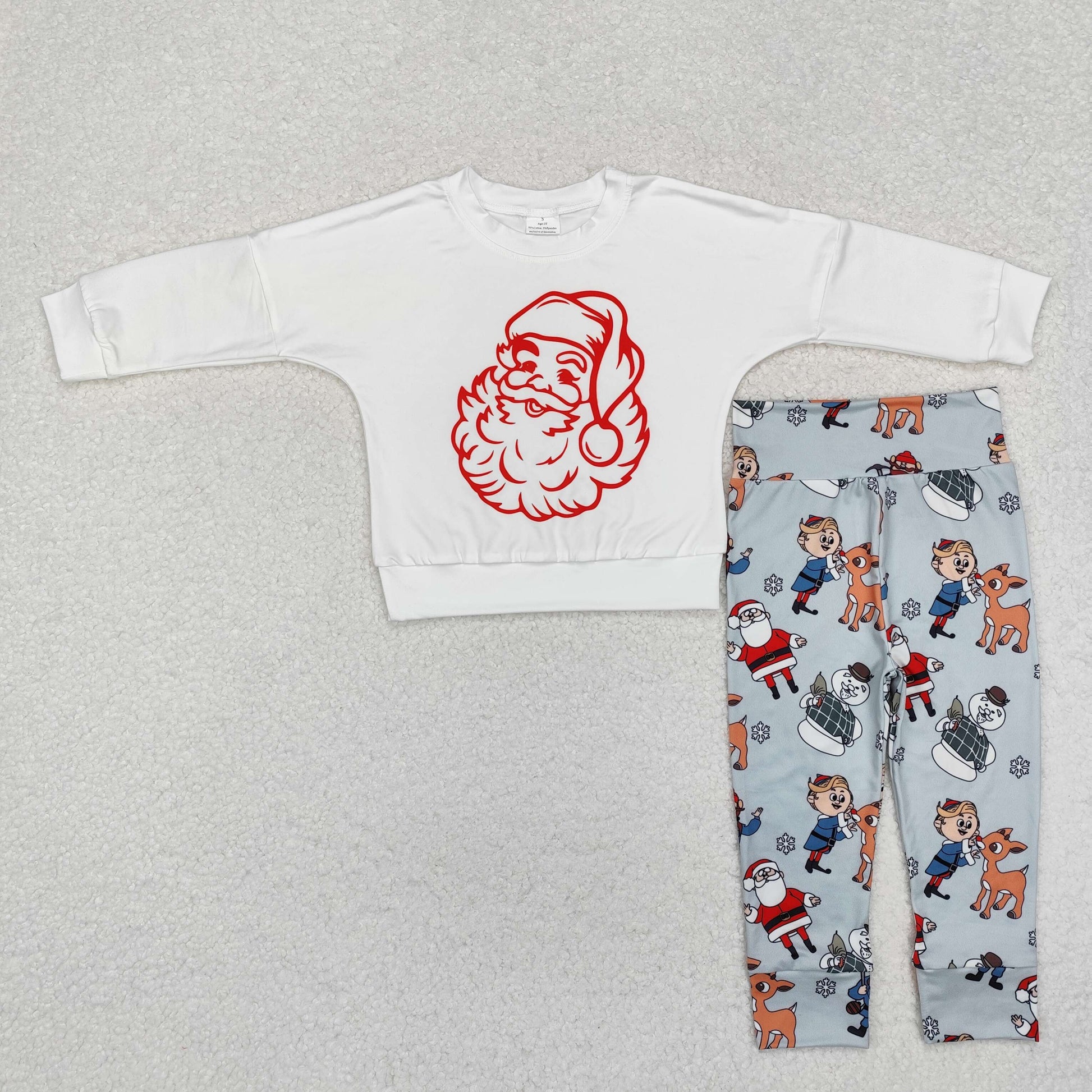 RTS NO MOQ ETA 5/7days Arrived BLP1003 Santa Claus white long-sleeved snowman elf trousers set