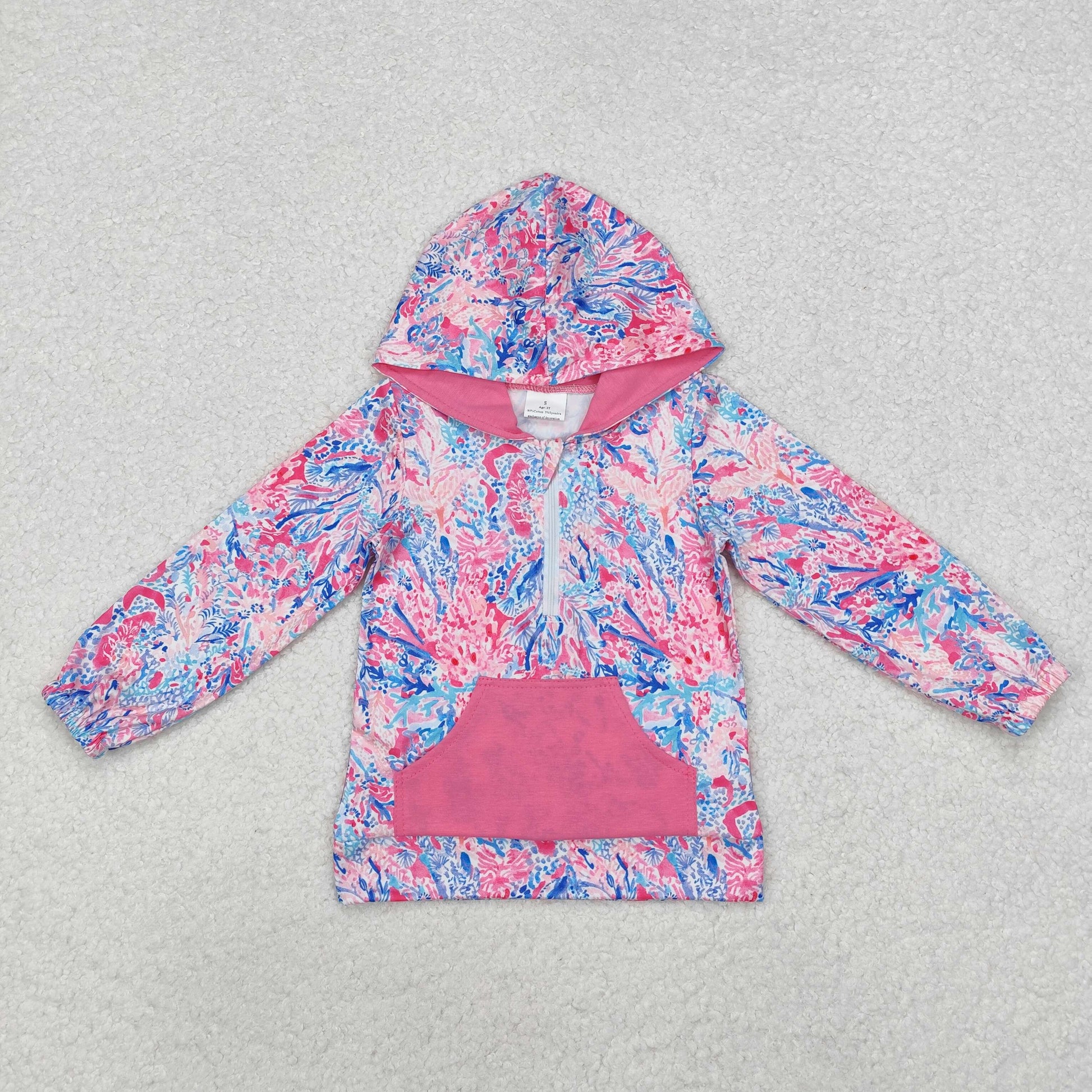 RTS NO MOQ ETA 5/7days arrived GT0745 Flower seagrass rose red pocket zipper hooded long-sleeved top