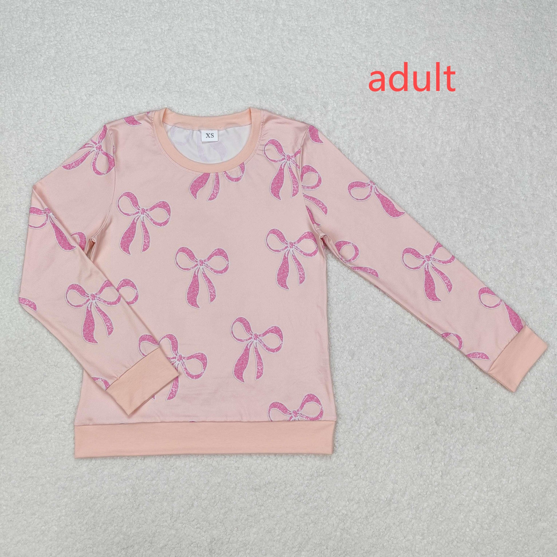 RTS NO MOQ ETA 5/7days arrived GT0878 Adult female pink long-sleeved top with bow pattern