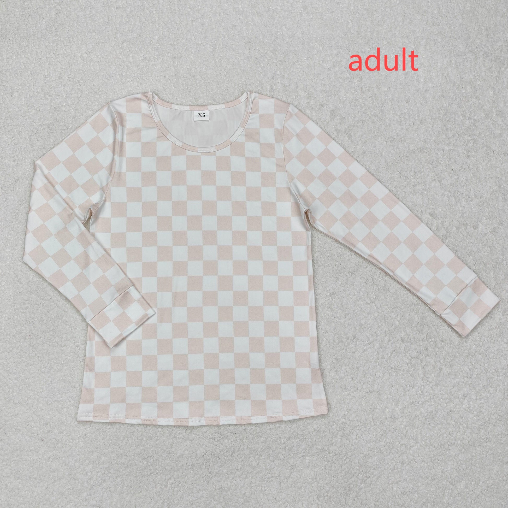 RTS NO MOQ ETA 5/7days arrived GT0906 Adult Women Pink Checkered Long Sleeve Shirts Tops