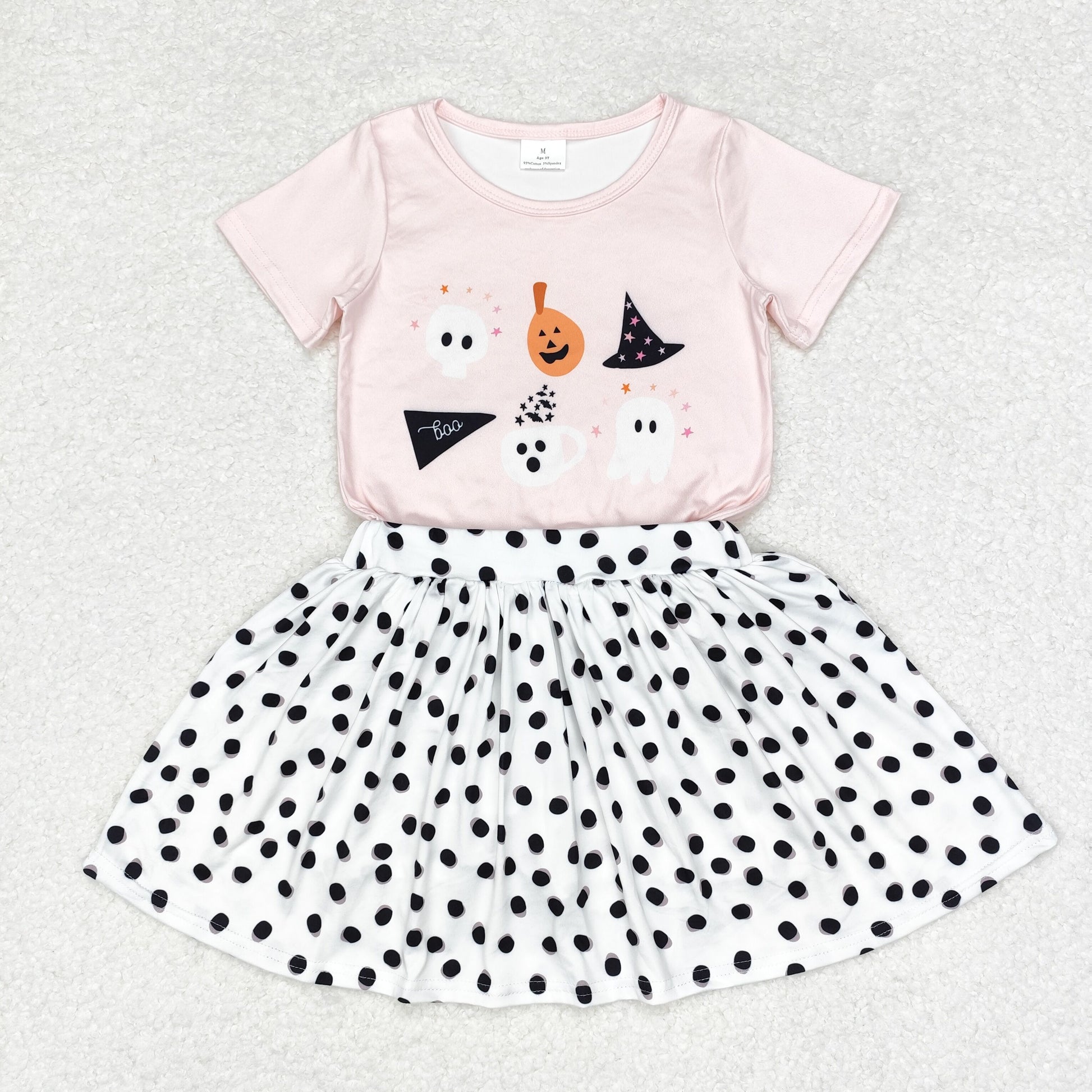 RTS NO MOQ ETA 5/7days GT0698+GLK0031 Halloween ghost pumpkin pink short-sleeved top Black polka dot white skirt sets