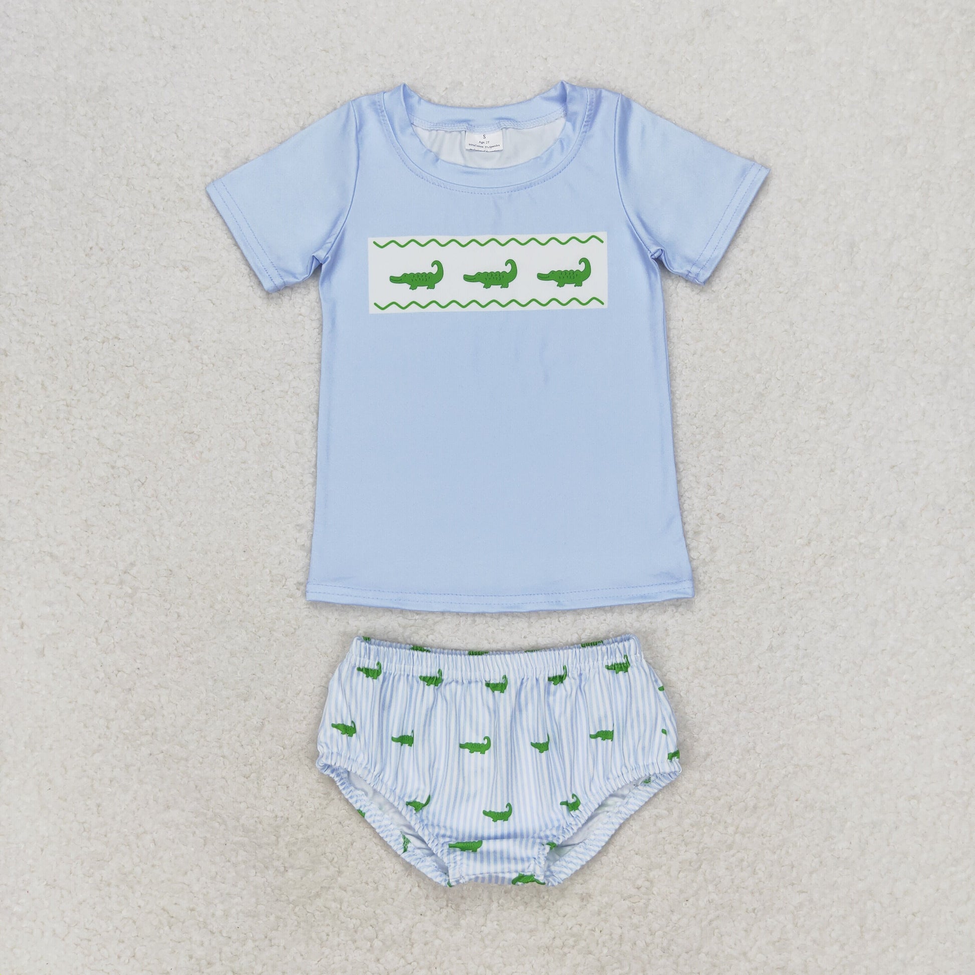 RTS no moq GBO0370 Crocodile Blue Short Sleeve Striped Briefs Set