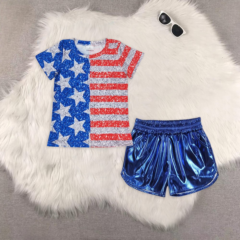 RTS NO MOQ Sibling Girls Boys cheers 4th of july short sleeve Clothes Sets and top and shorts