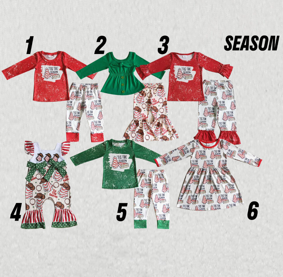 RTS NO MOQ Girls Tis The Season Green Long Sleeve Pants Set