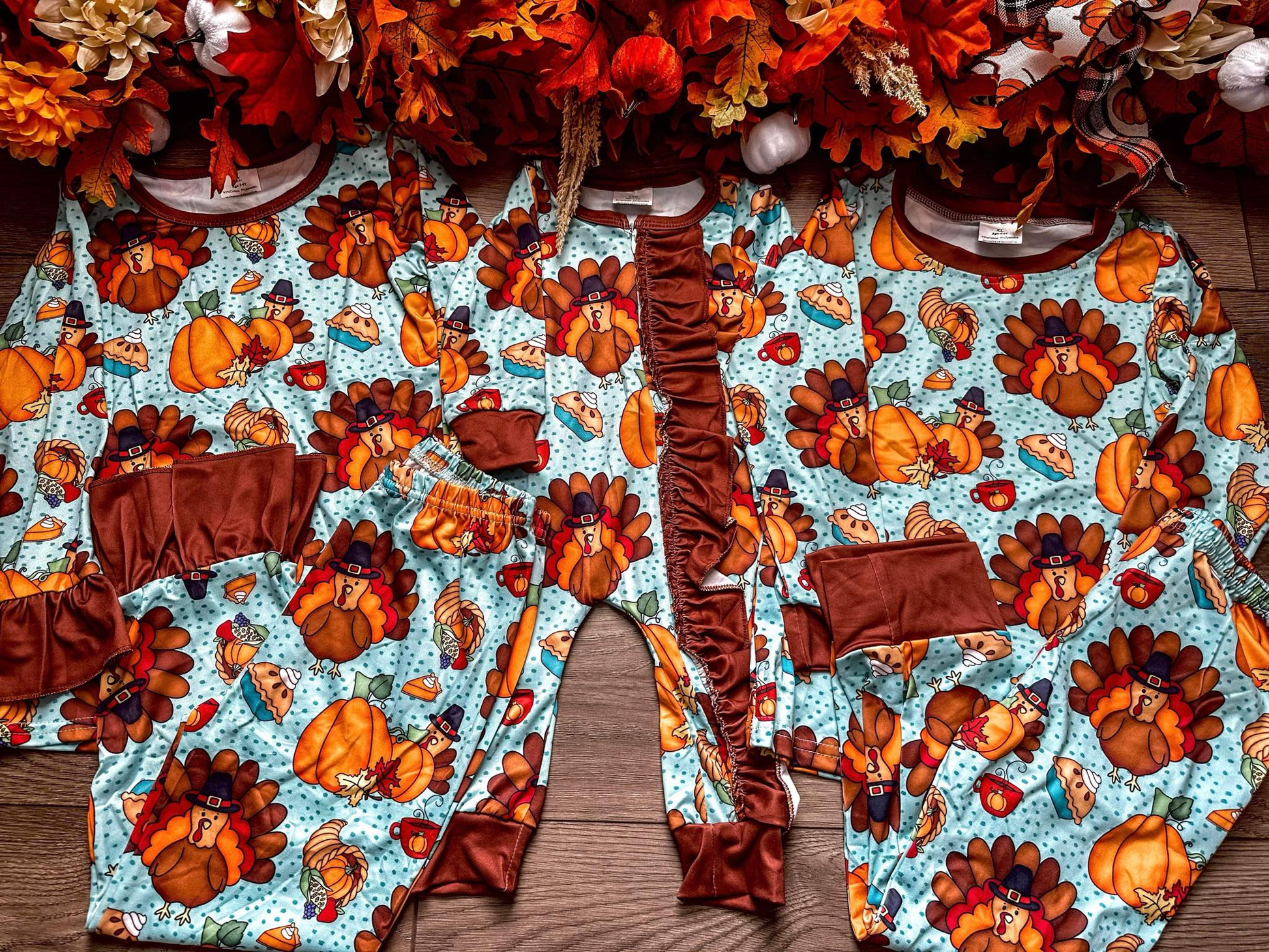 RTS NO MOQ GLP0684、BLP0287、LR0580、LR0581 Pumpkin Turkey Brown Lace Long Sleeve Pants Set
