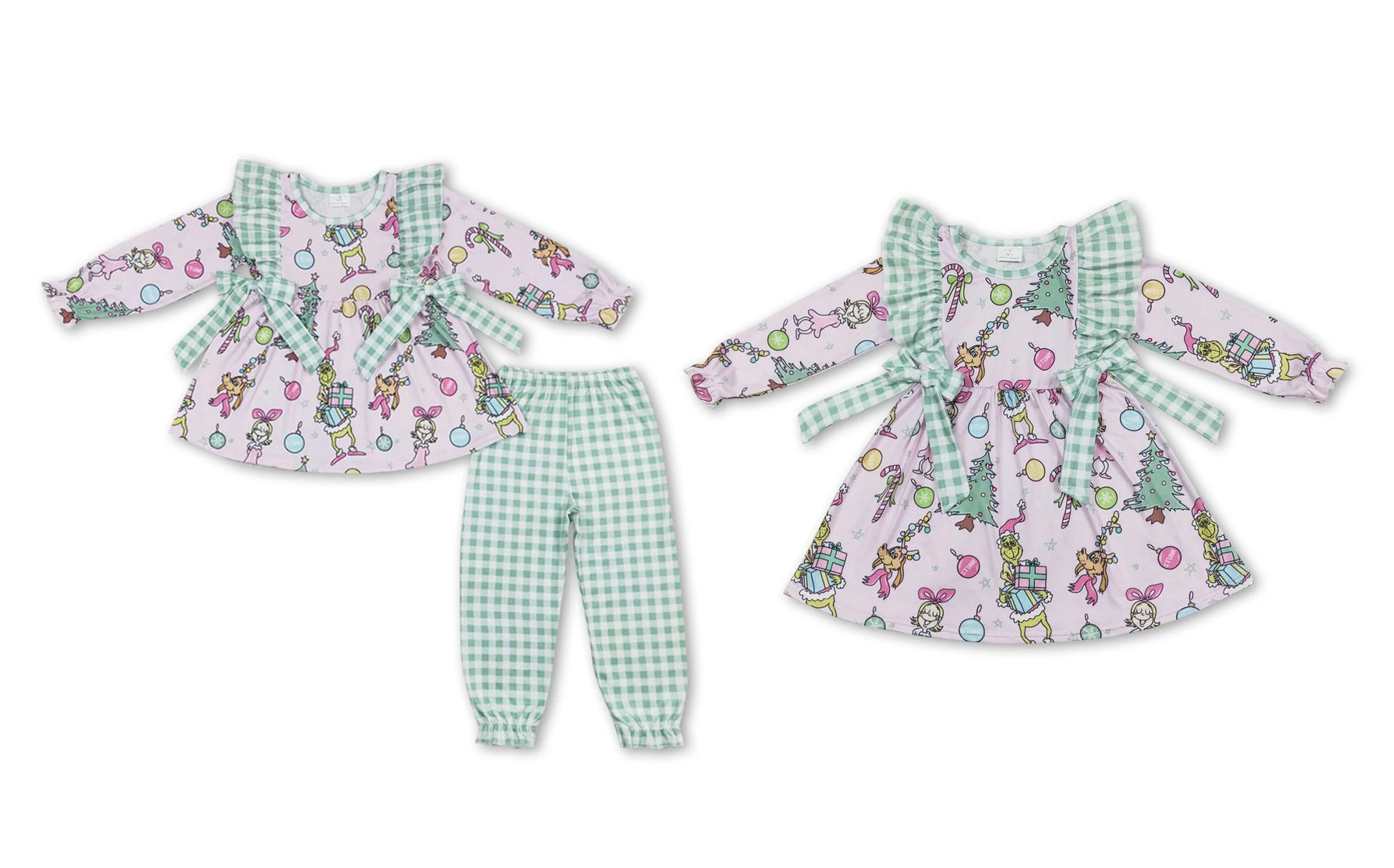 RTS NO MOQ grinch christmas gift green plaid lace butterfly GLP1189 GLD0519