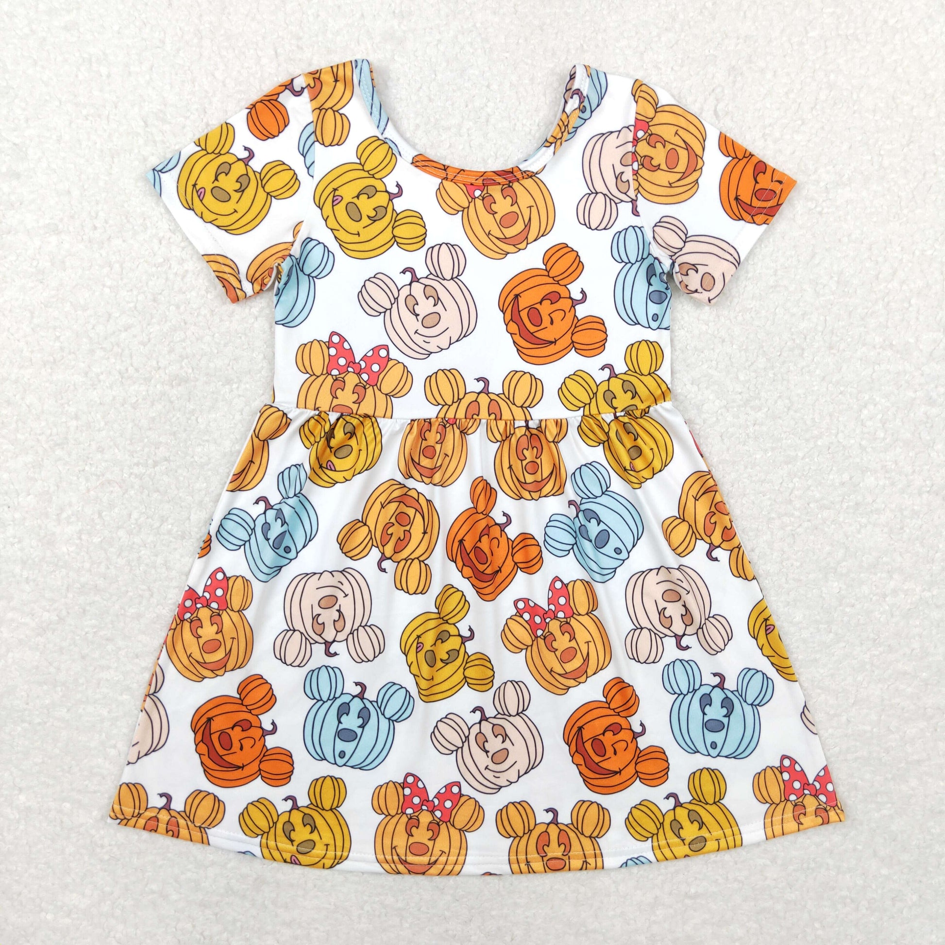RTS no moq GSD1367 Mickey Jack-O'-Lantern White Short Sleeve Dress