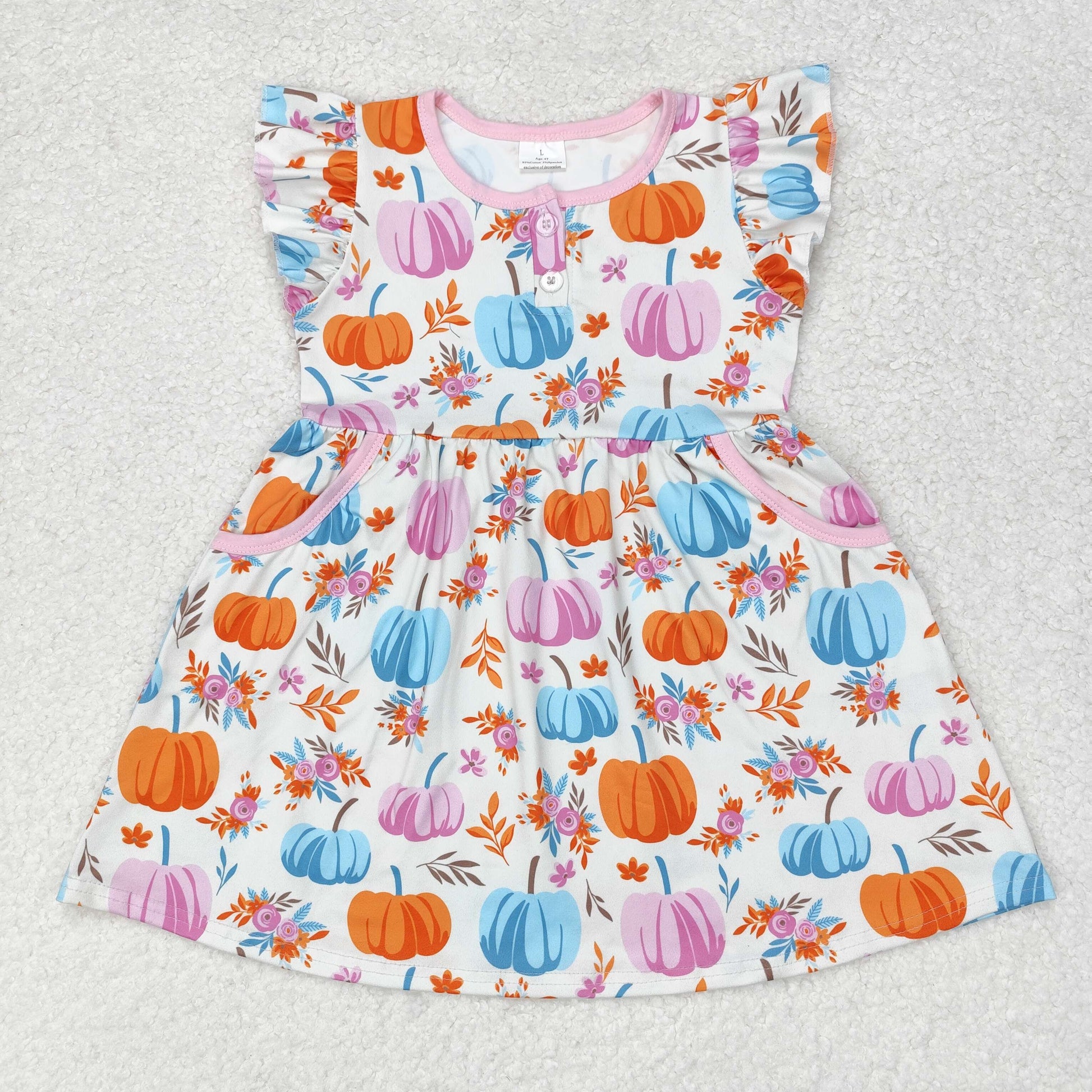 RTS no moq GSD1332 Pumpkin Blossom Beige Button Flying Sleeve Dress