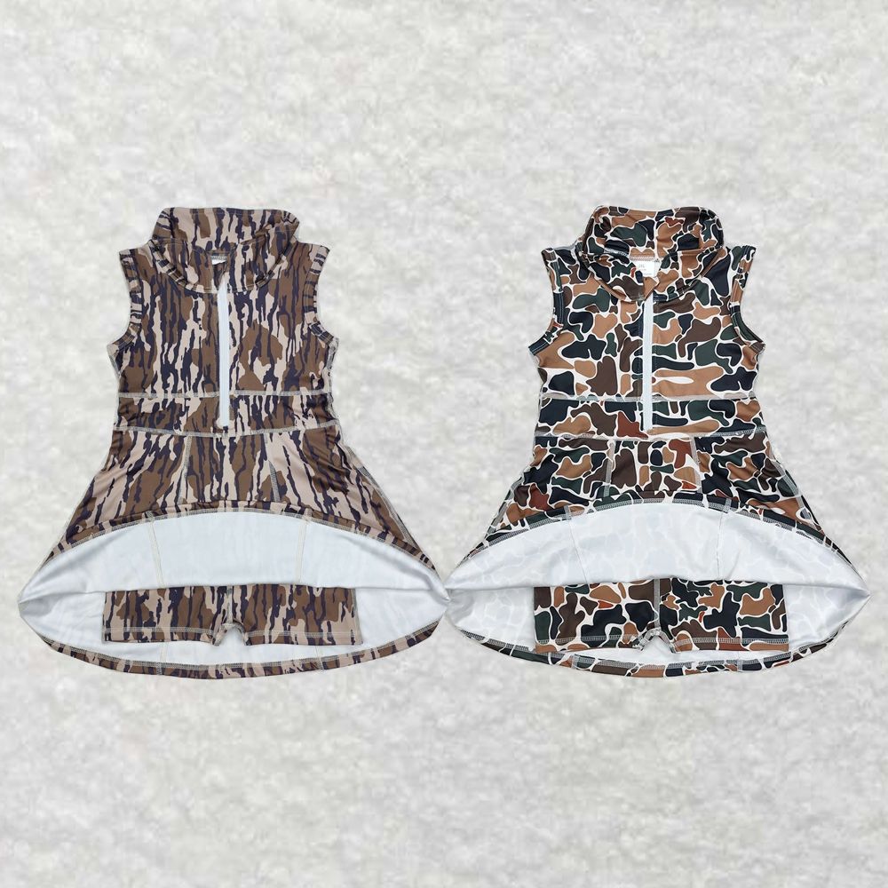 RTS NO MOQ GSD1383 Military green camouflage zipper yoga sleeveless dress
