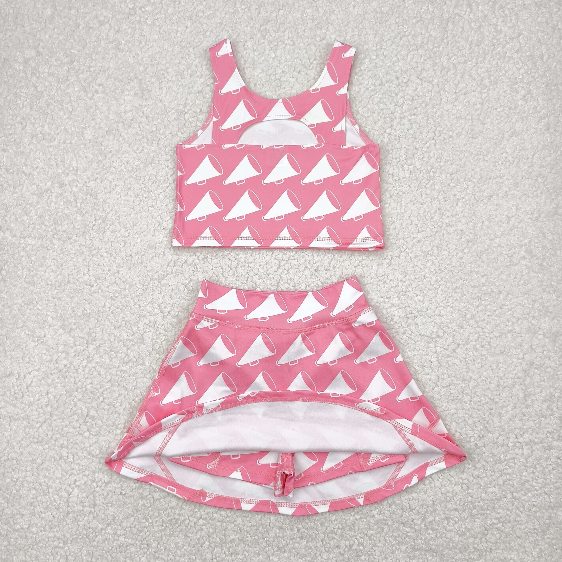 RTS NO MOQ GSD1467 Pink sleeveless pants skirt yoga set with megaphone