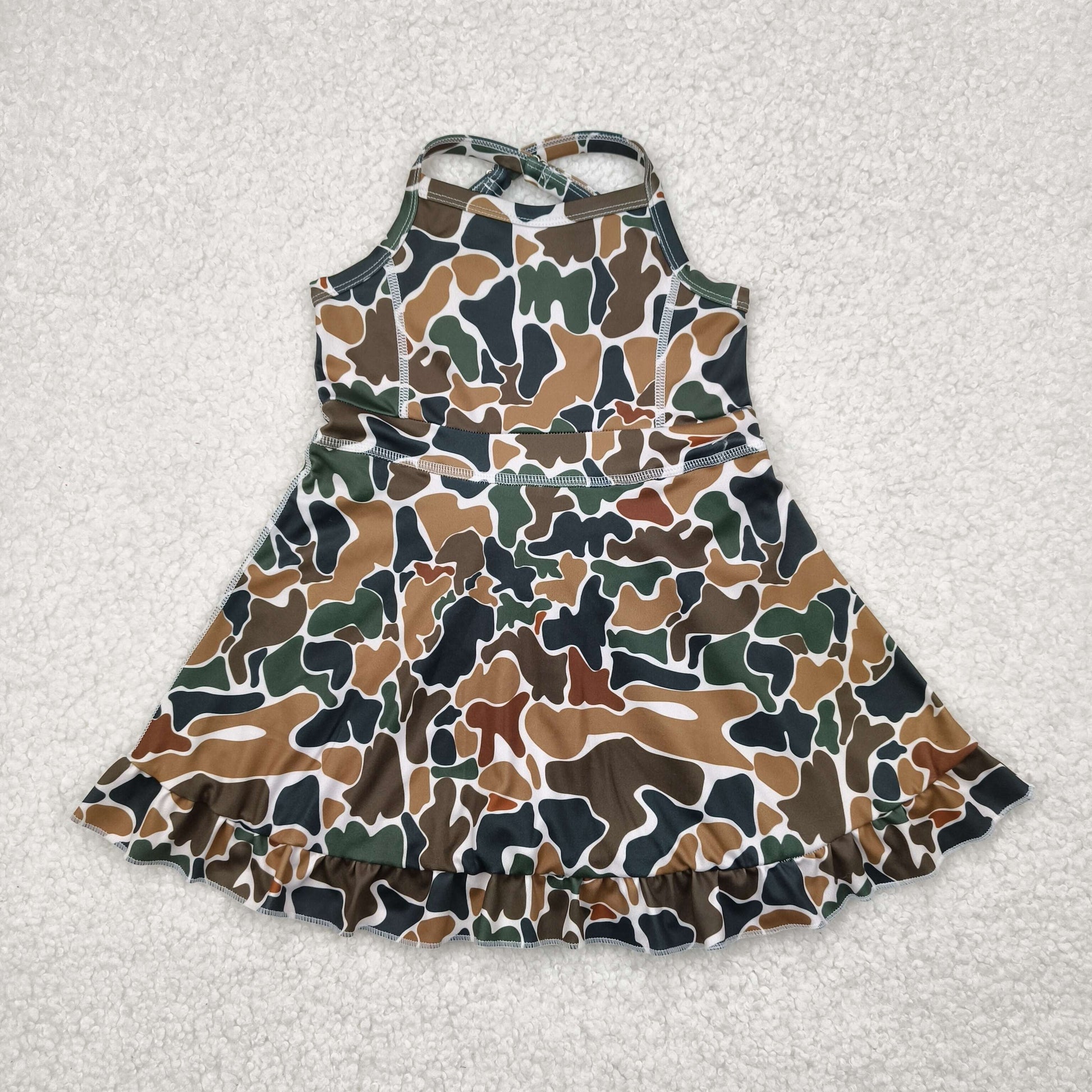 RTS NO MOQ GSD2309 Brown green camouflage beige sleeveless yoga dress