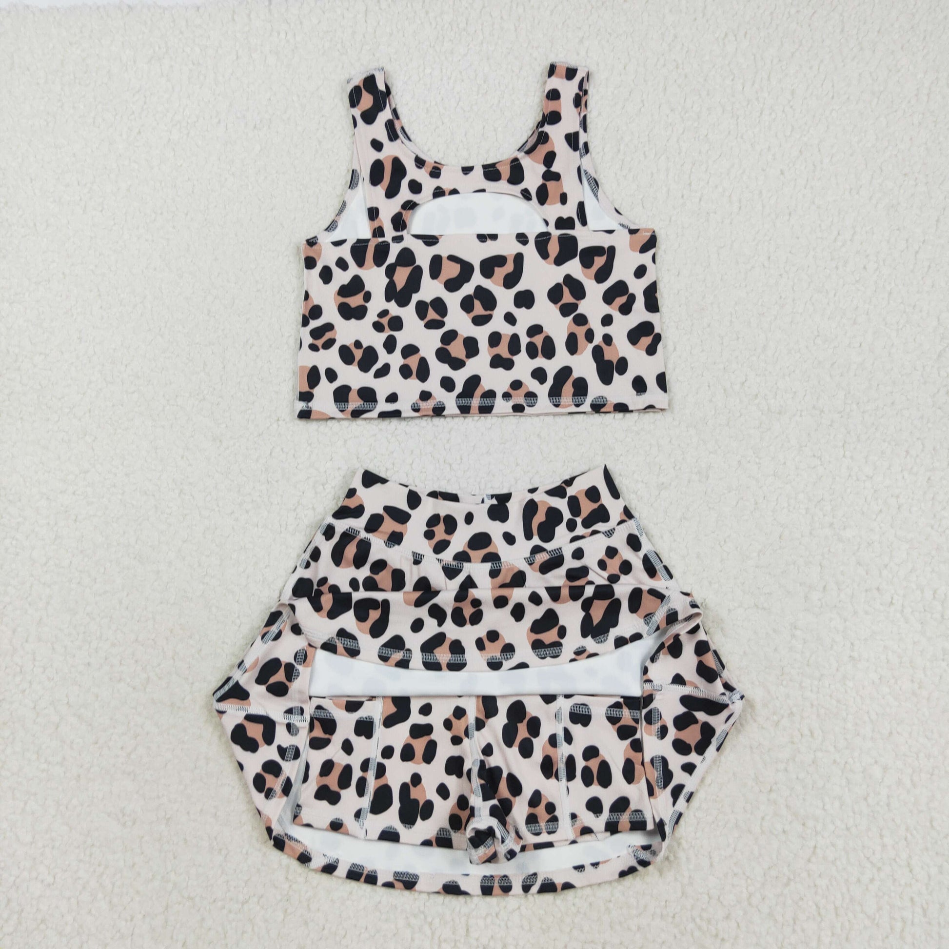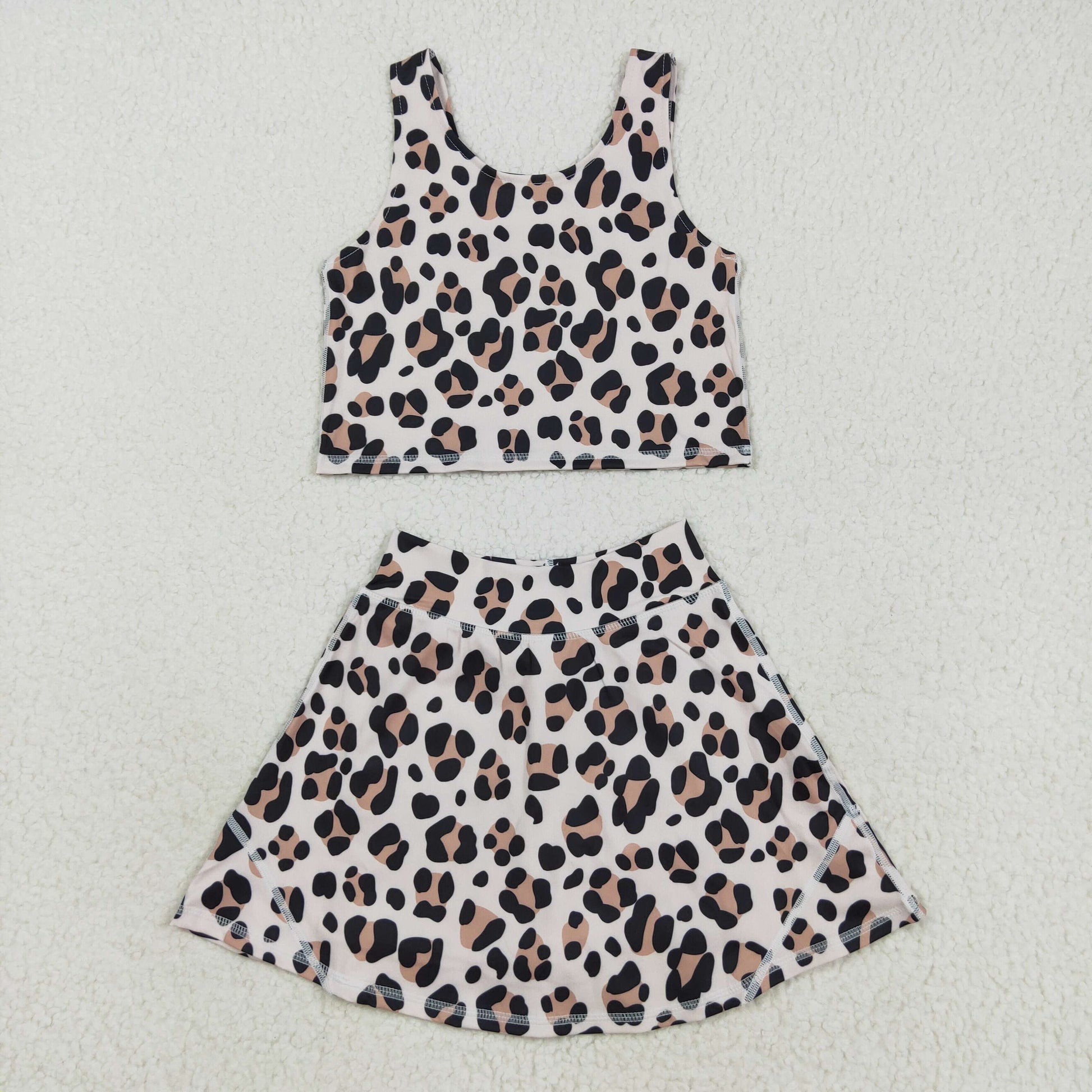 RTS NO MOQ(In Stock) GSD2327 Brown leopard print beige vest skirt yoga suit