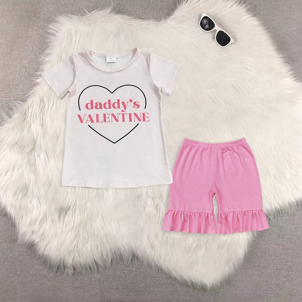 RTS NO MOQ GT0452+SS0356 Floral pattern flying sleeve top Pink straight one-layer lace shorts sets