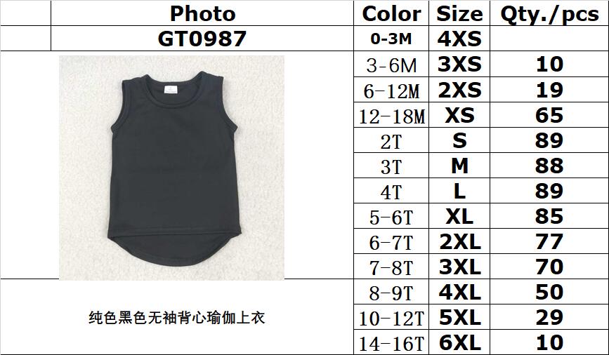 RTS NO MOQ GT0987 Pure black sleeveless yoga vest top