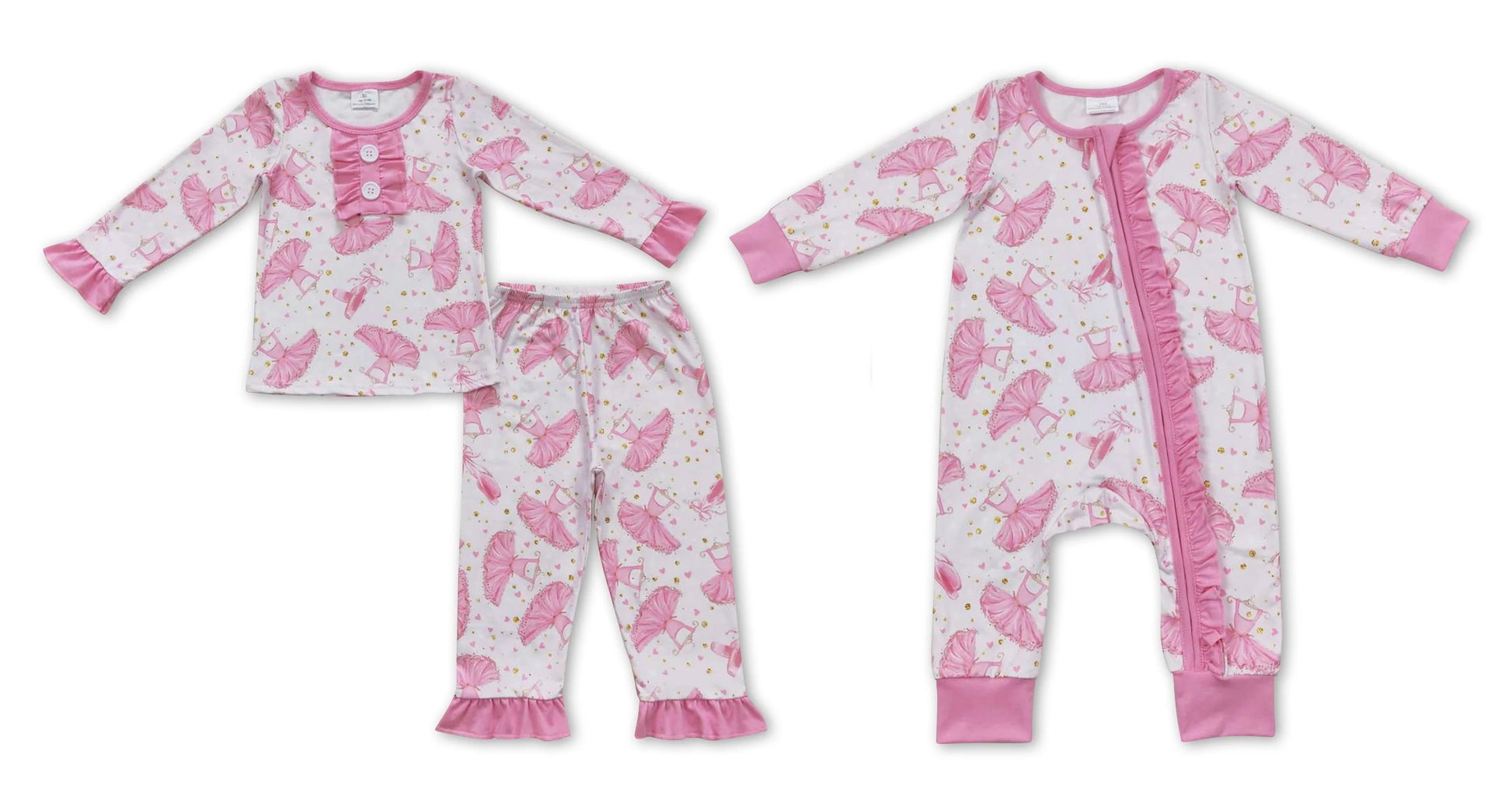 RTS NO MOQ Heart Pink Ballet Tutu Long Sleeve Pants Set Heart Pink Ballet Tutu romper