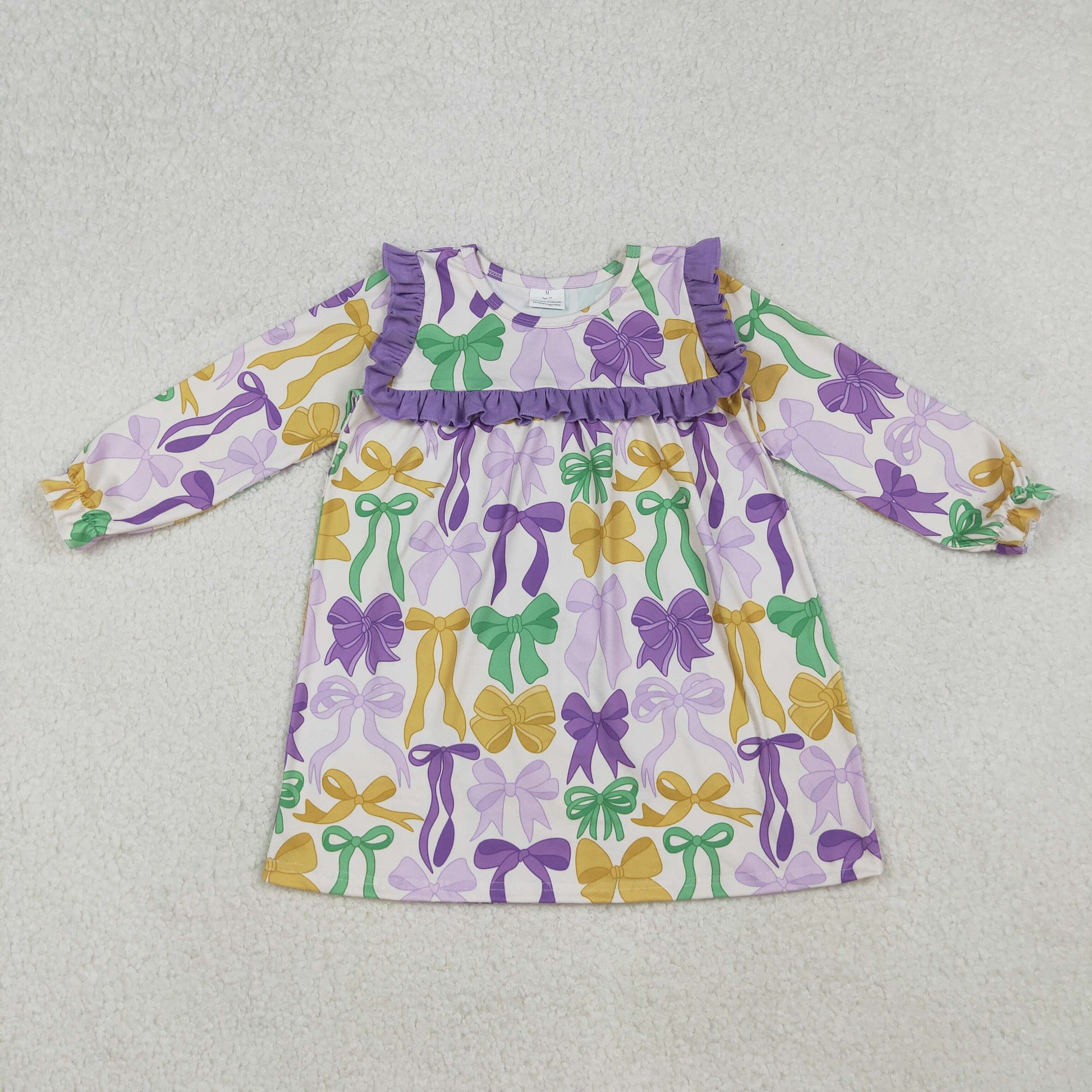 RTS NO MOQ(In Stock) 12/18m-7/8t GLD1295 Carnival bow pattern purple lace long-sleeved dress