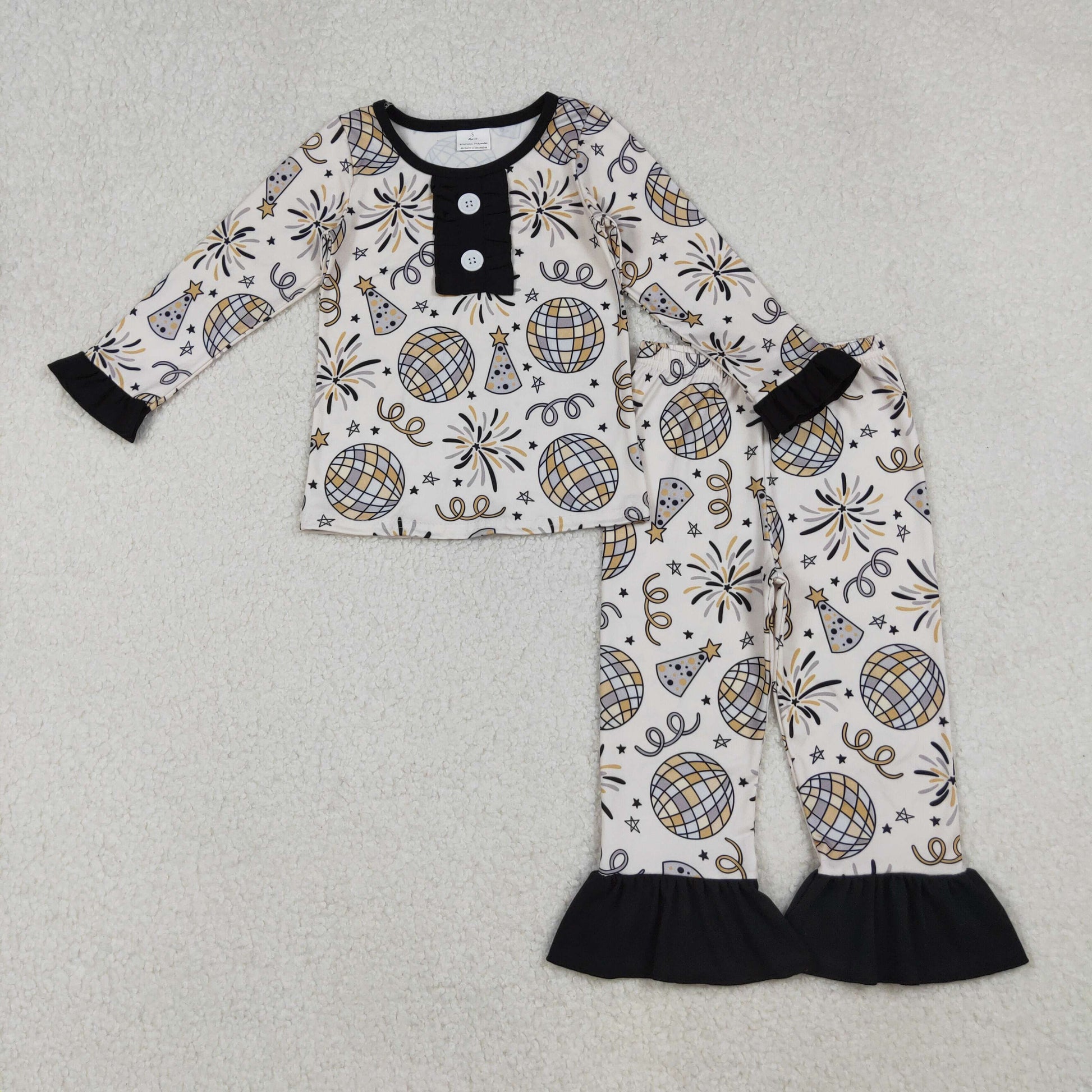 12/18M-7/8T RTS NO MOQ(In Stock) GLP2563 New Year Fireworks Ball Lace Long Sleeve Trousers Pajama Set