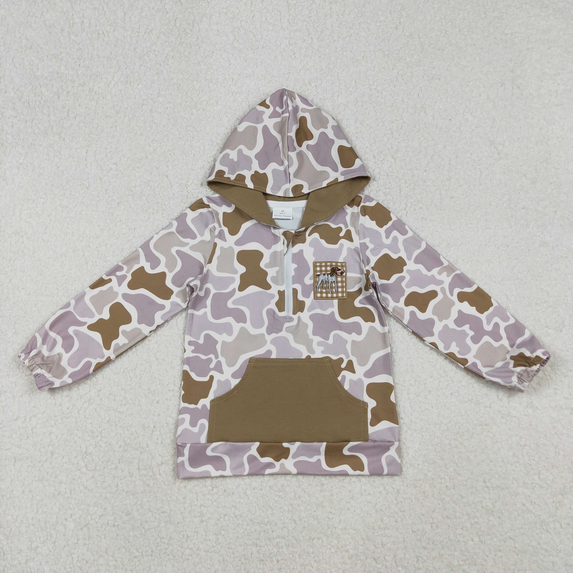 RTS NO MOQ(In Stock) BT1302 Embroidered Dalmatian camouflage military green pocket zip-up hooded long-sleeved top