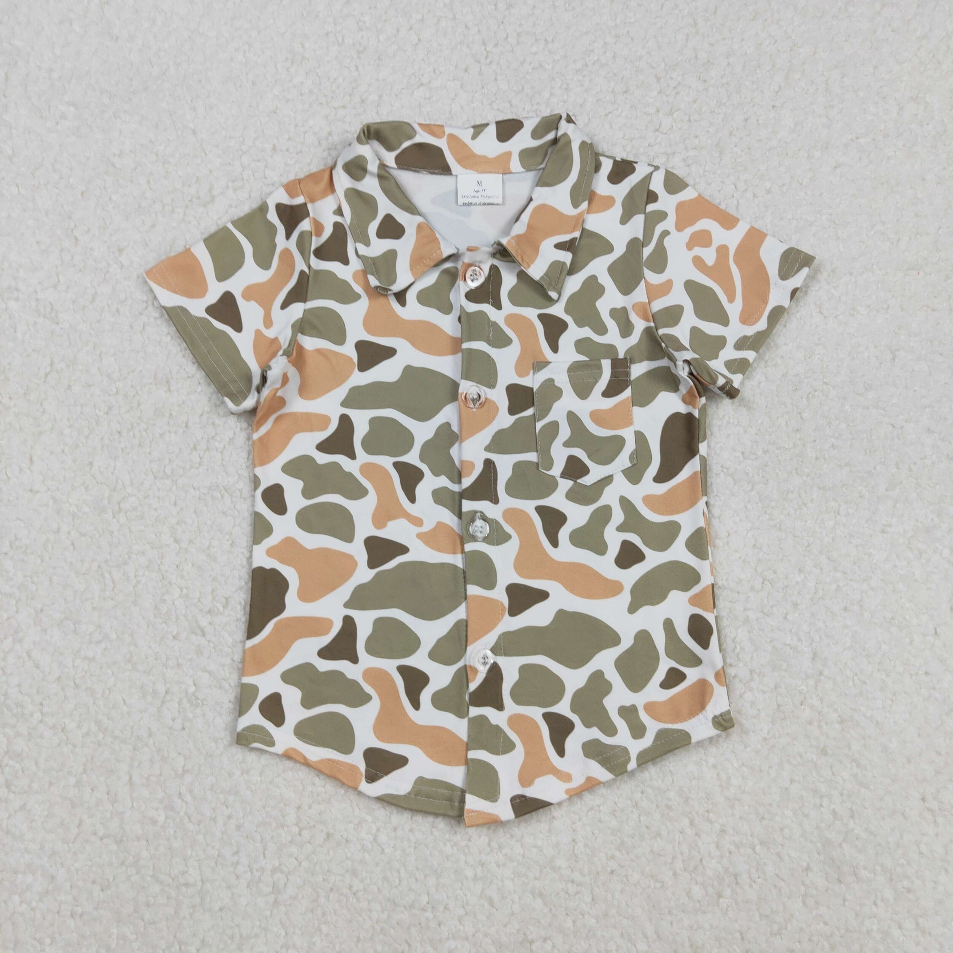 RTS NO MOQ(In Stock) BT1312 Orange and Green Camouflage Pocket Button Short-Sleeved Top