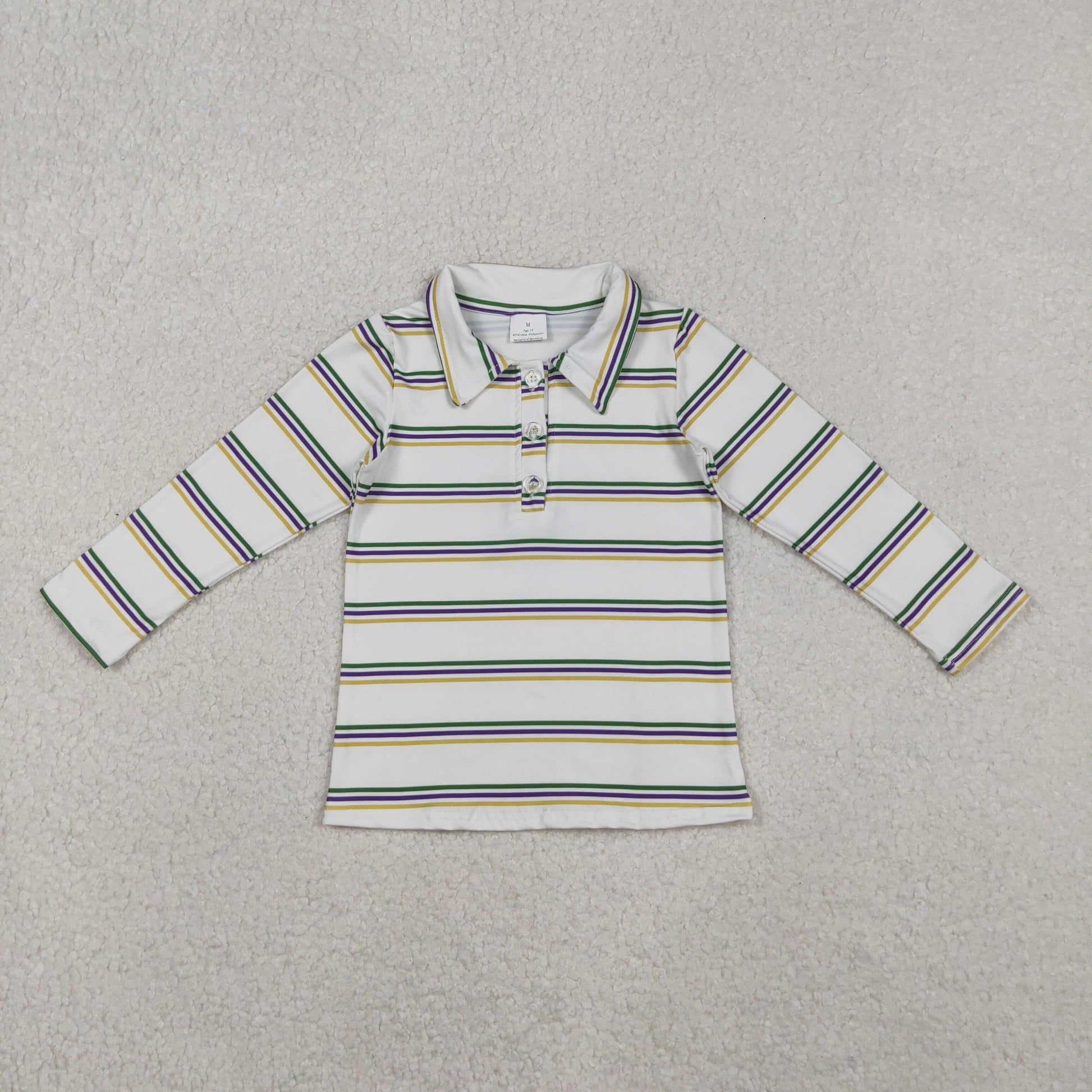RTS NO MOQ(In Stock) BT1375 Carnival green, purple, and yellow striped white long-sleeved top