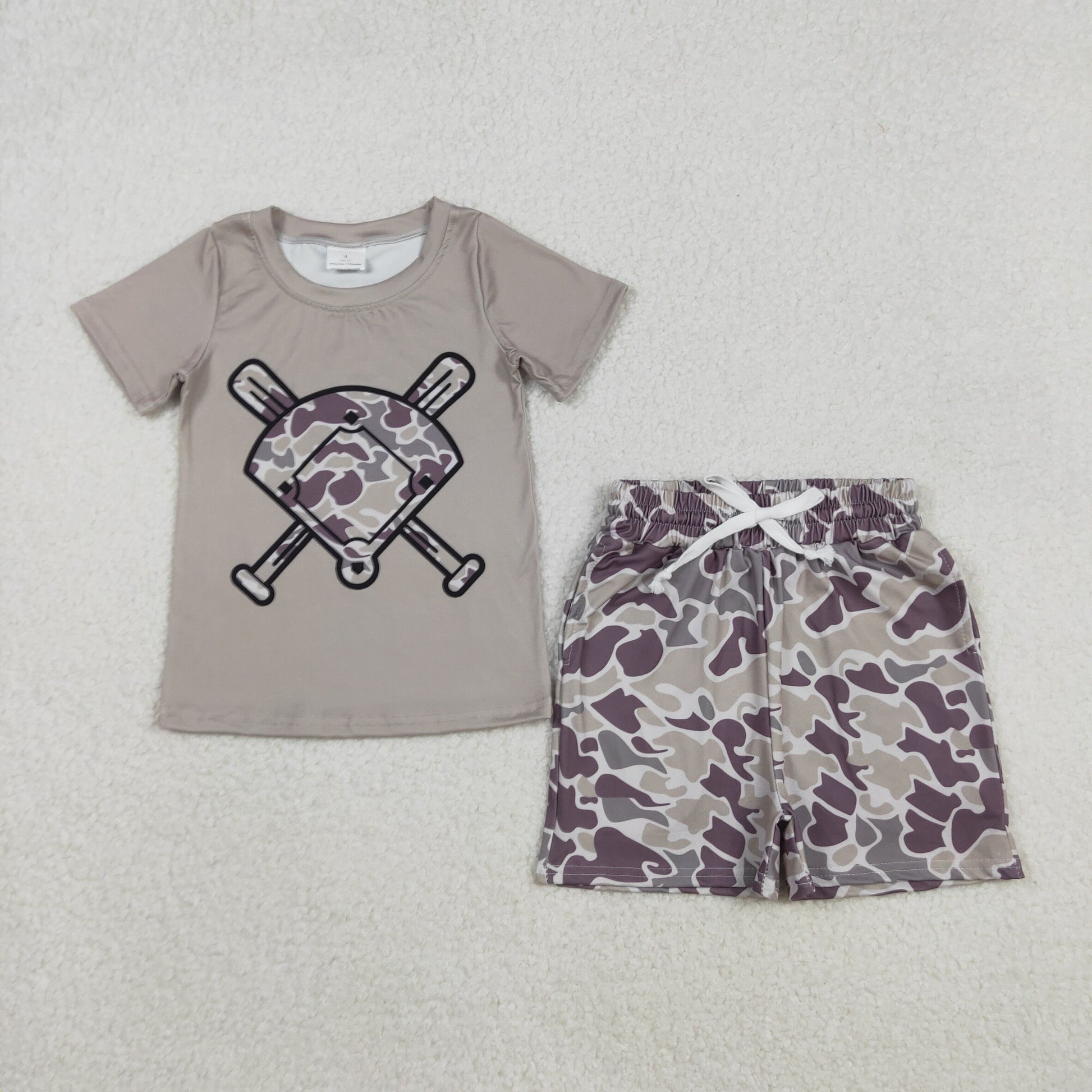 RTS NO MOQ(In Stock) BT1417+SS0733 Camouflage Fan Baseball Short-Sleeve Shirt Boys Shorts set