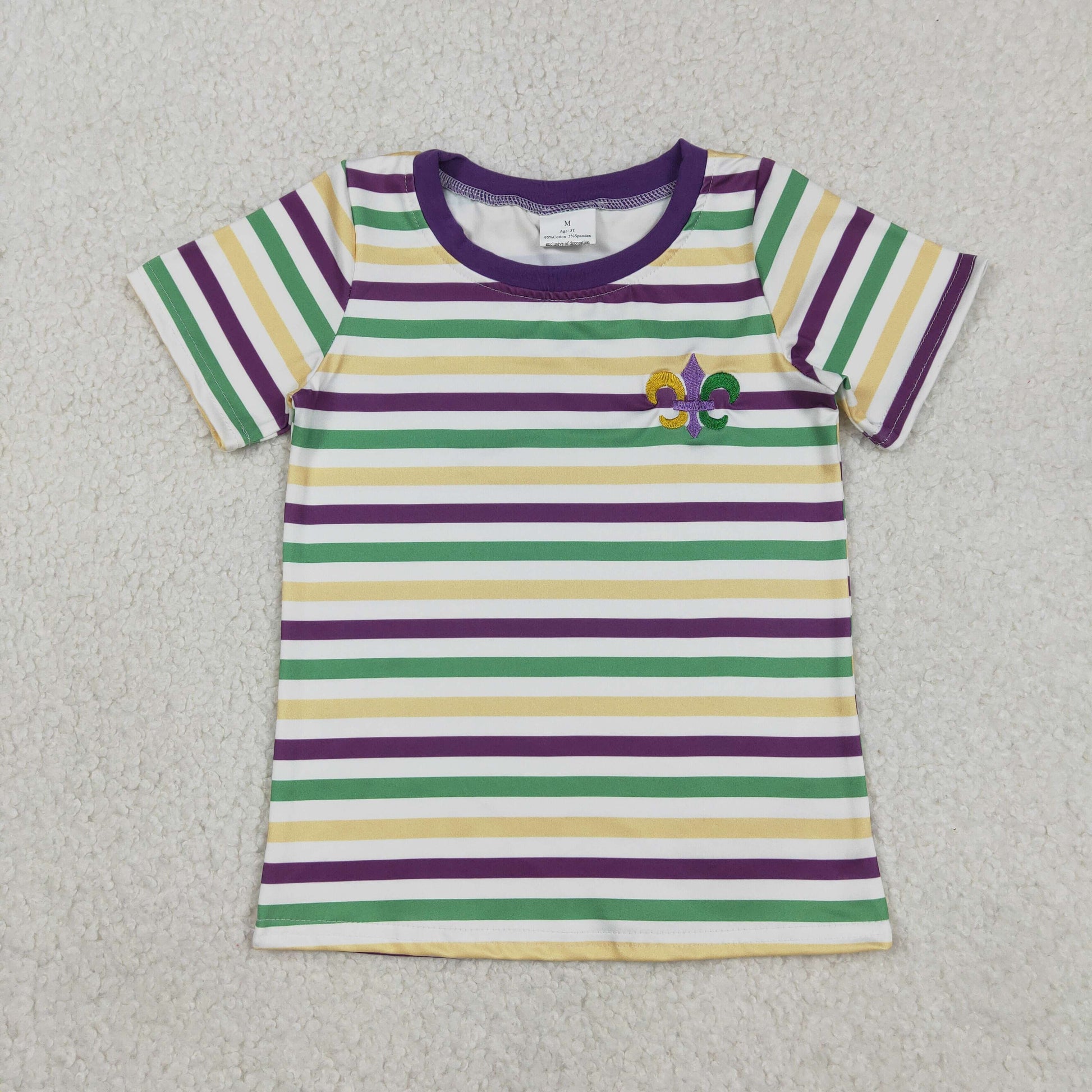 RTS NO MOQ(In Stock) BT1437 Embroidered Carnival Pattern Striped Short-Sleeve Top