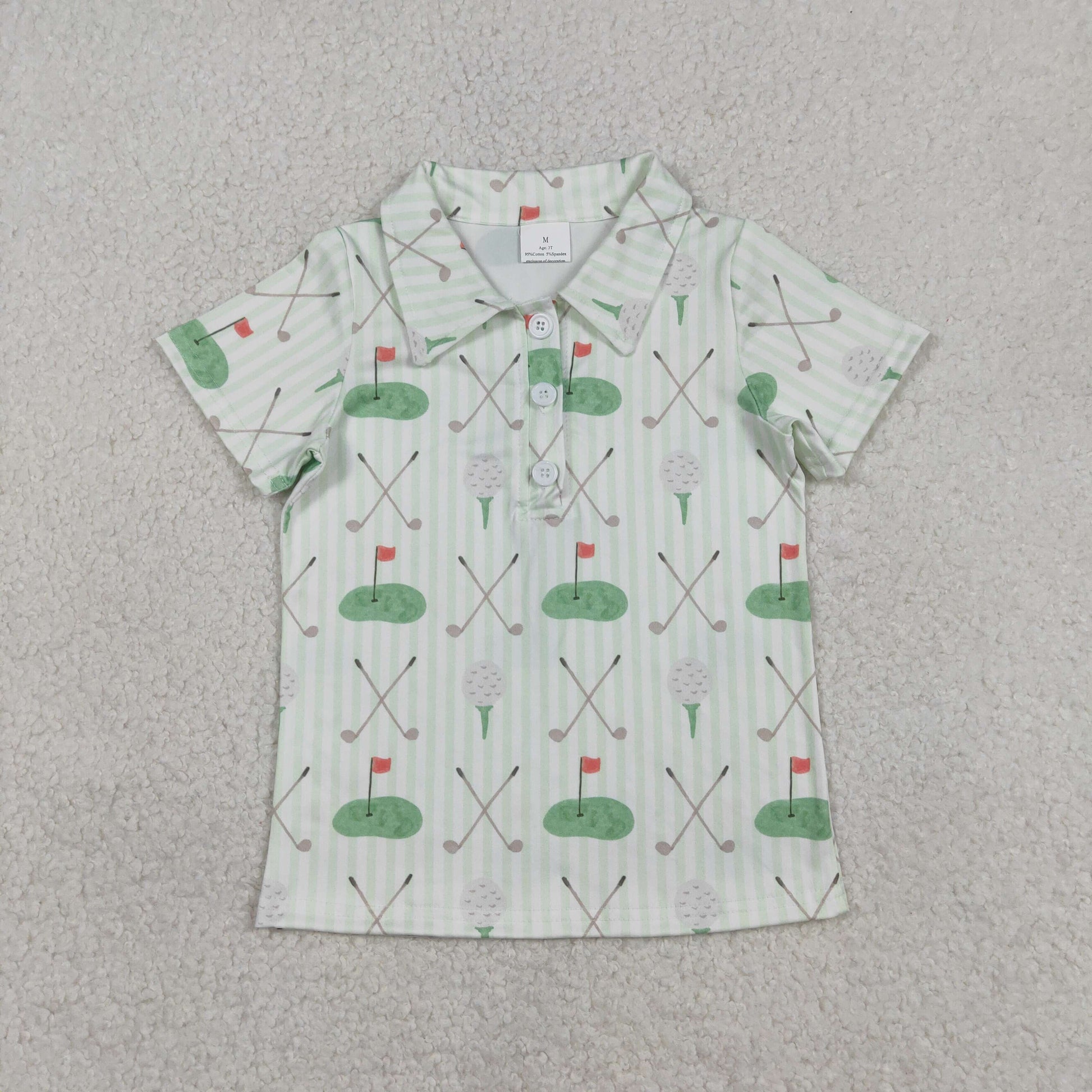 RTS NO MOQ(In Stock) BT1584 Golf Course Red Flag Green Striped Button-Up Collar Short-Sleeved Top