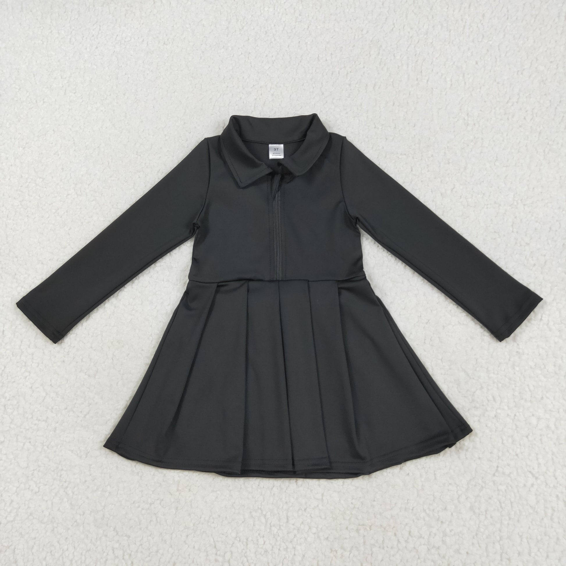 RTS NO MOQ(In Stock) GLD1150 Solid black zipper long sleeve yoga dress