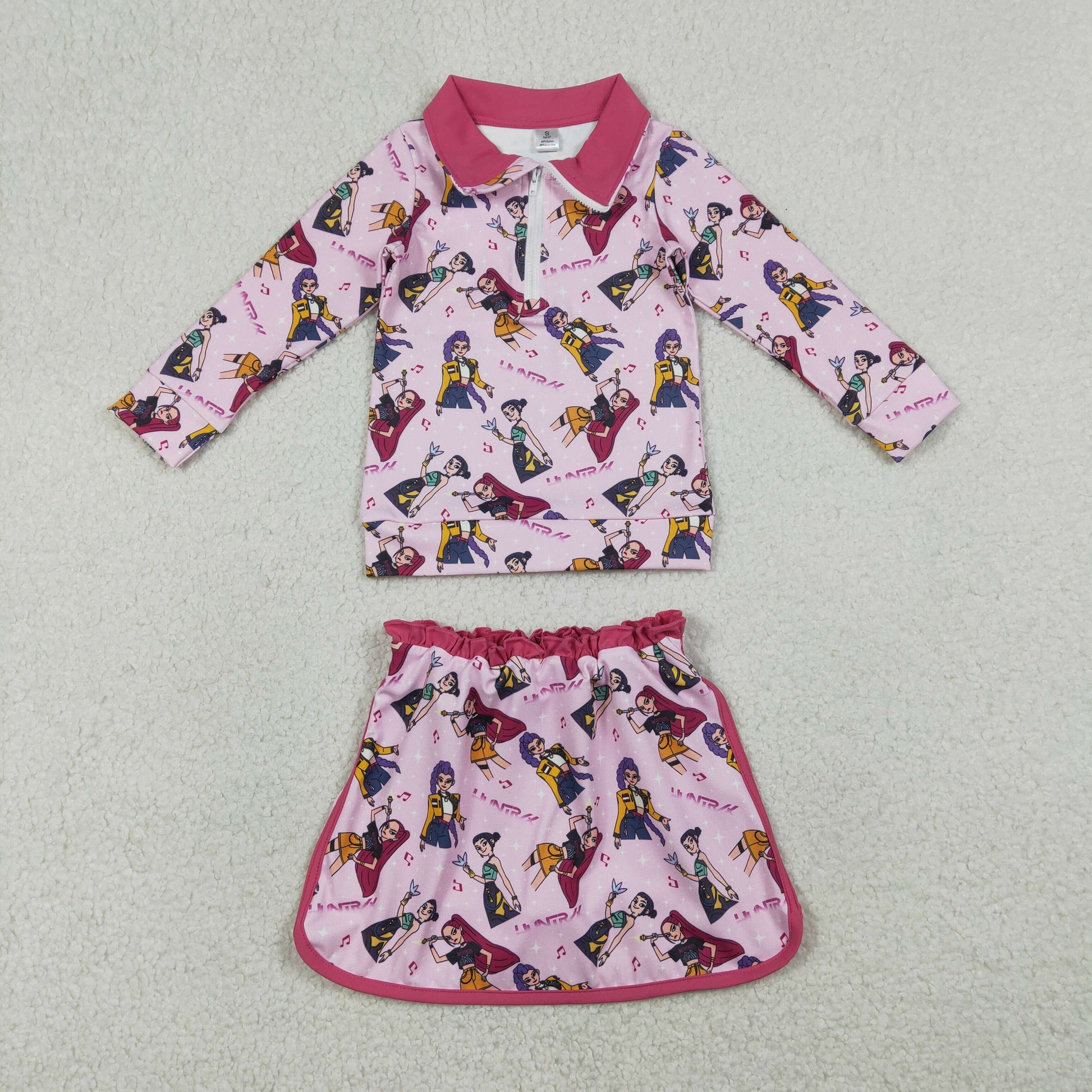 12/18m-14/16t RTS NO MOQ(In Stock ) GLD1500 Kpop Music Rose Red Zipper Long-Sleeved Midi Skirt Yoga Set