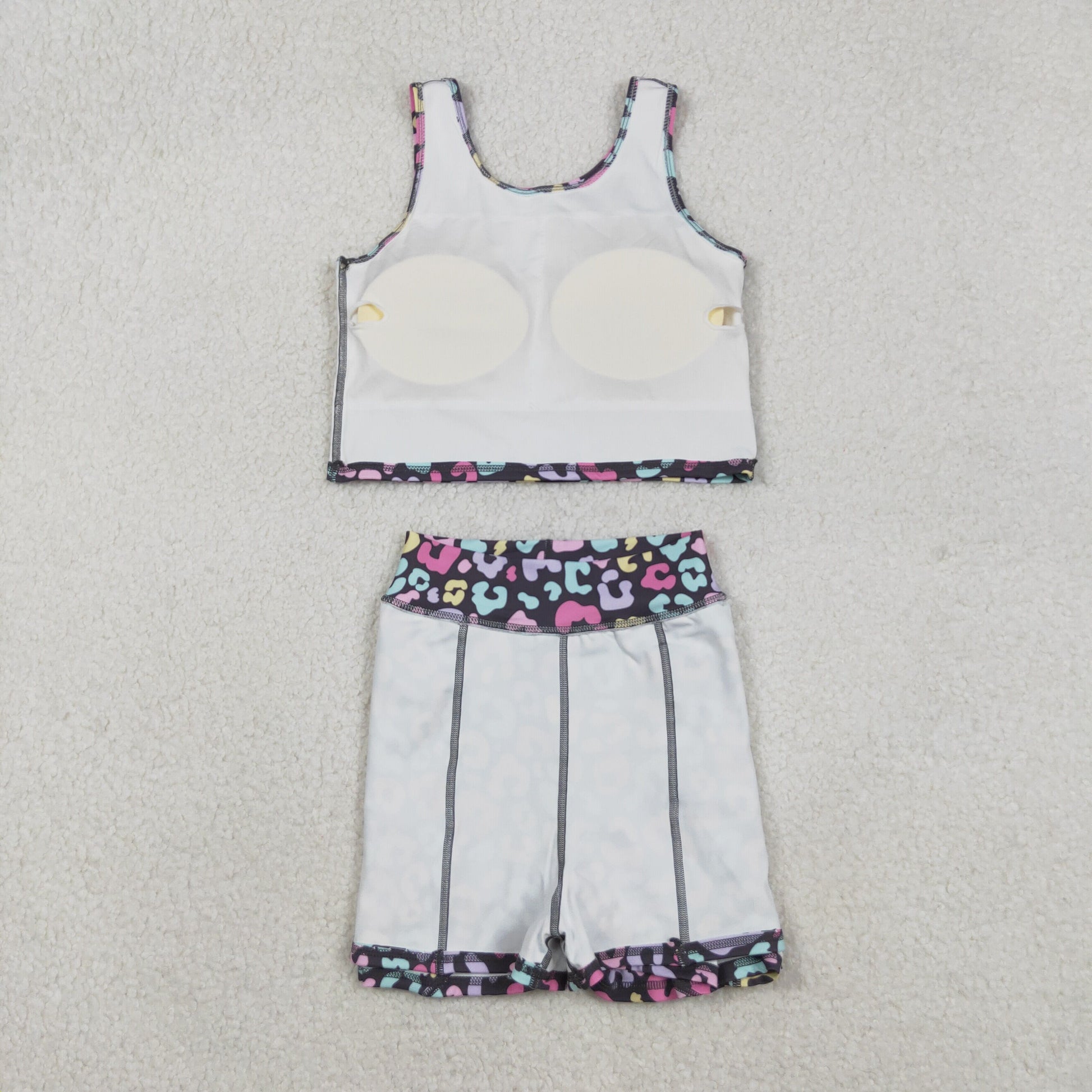 RTS NO MOQ(In Stock) GSD2176 Colorful leopard print gray vest and pants skirt yoga set