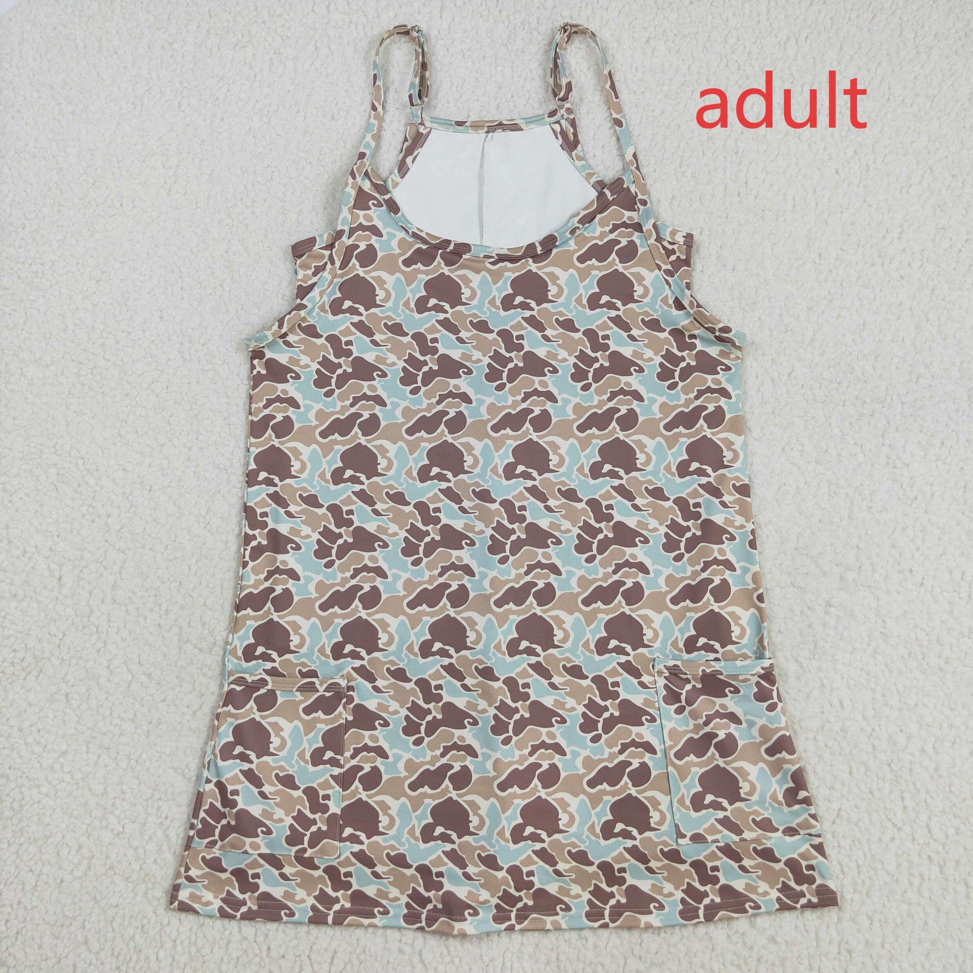 RTS NO MOQ(In Stock) GSD2734 Adult women's light brown and green camouflage pocket beige yoga slip dress