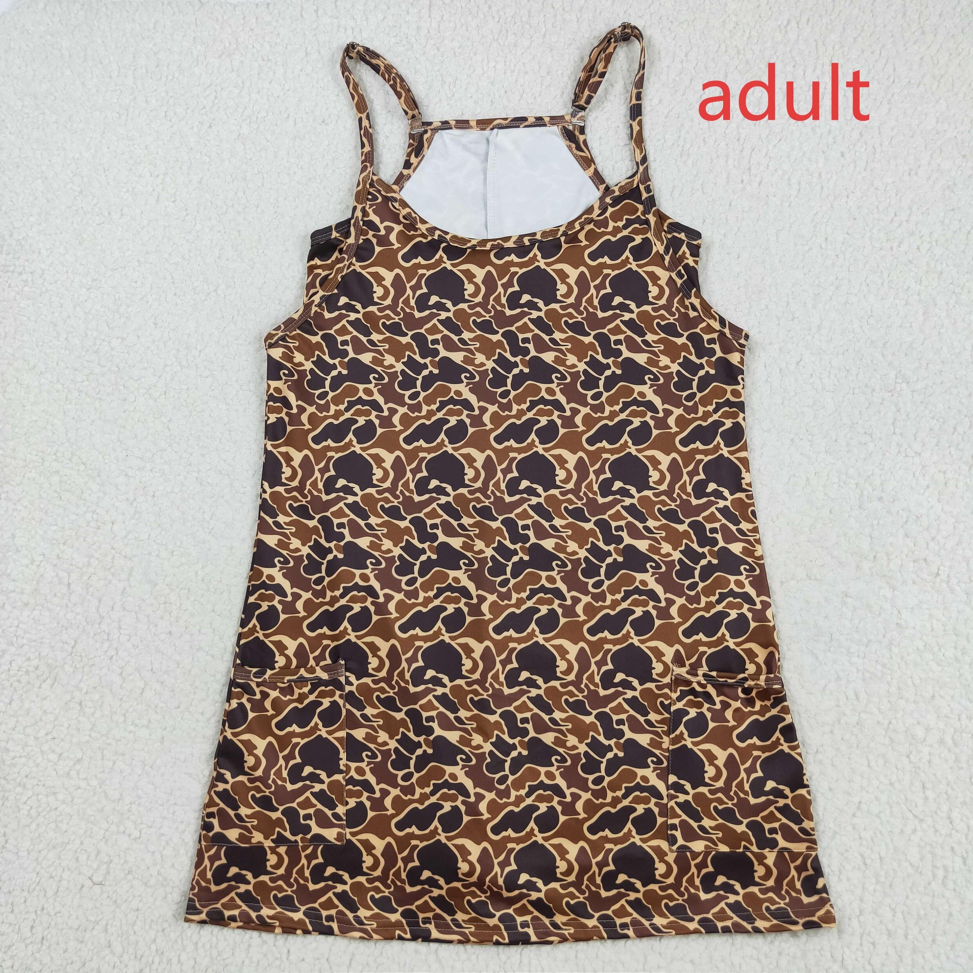 RTS NO MOQ(In Stock) GSD2735 Adult women's brown camouflage pocket yoga slip dress