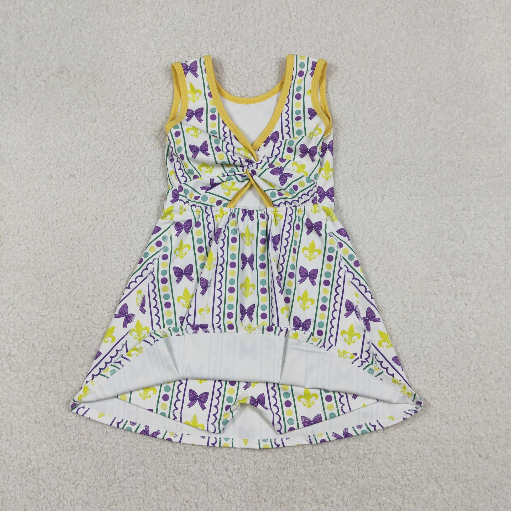 RTS NO MOQ(In Stock) Carnival Pattern Wavy Stripe Yoga Sleeveless Dress with Bow Pattern