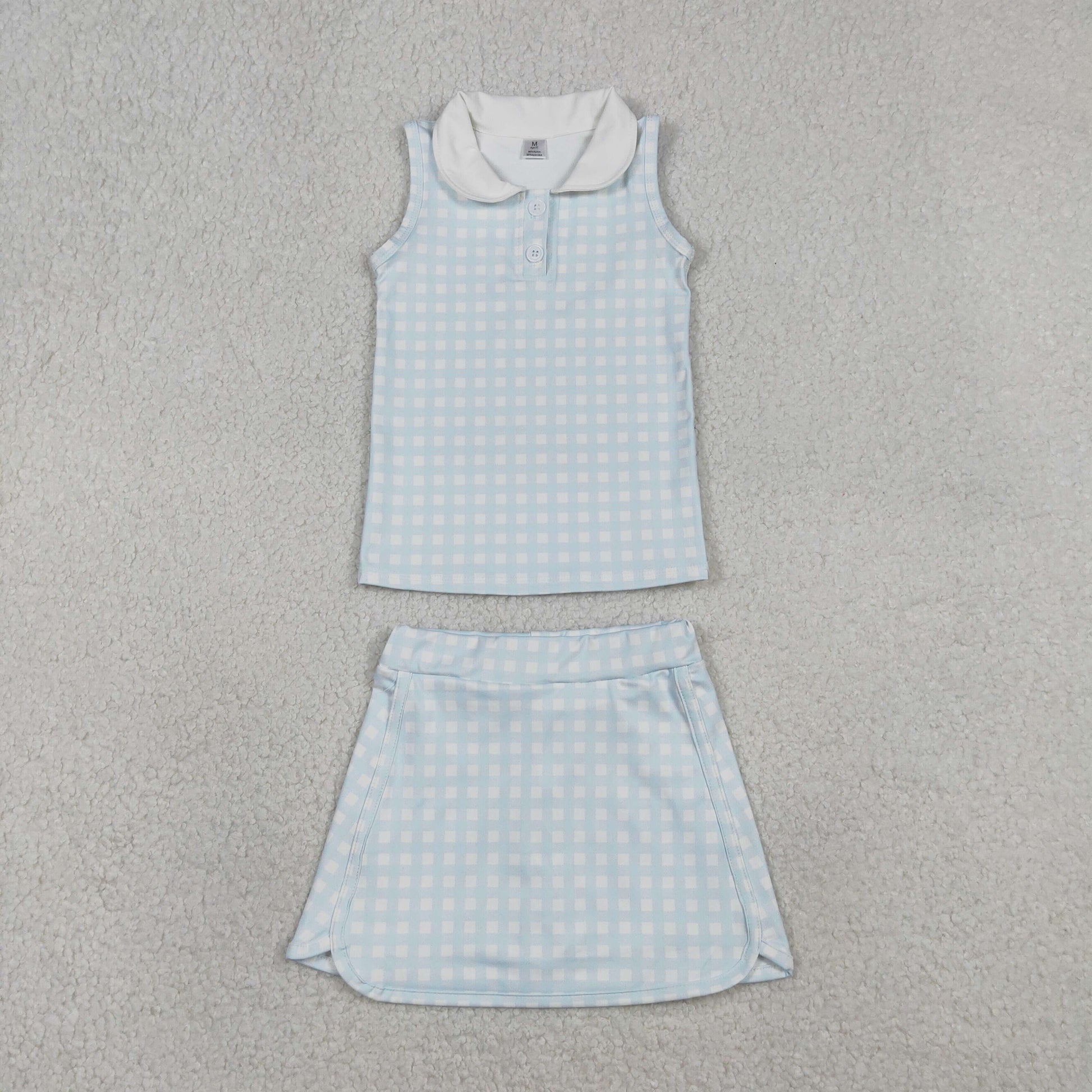 RTS NO MOQ(In Stock) GSD3375 Light Blue Plaid Button Sleeveless Yoga Set
