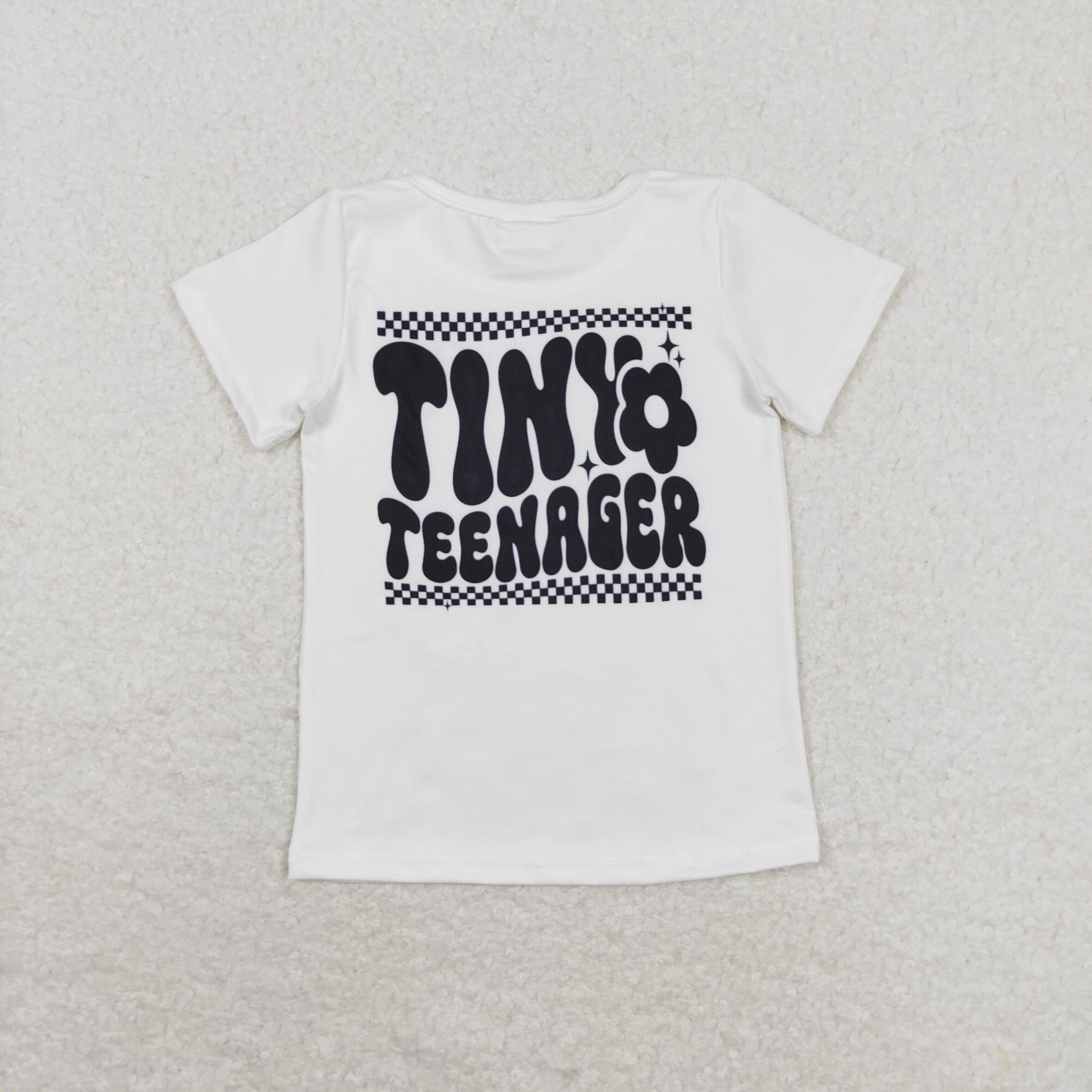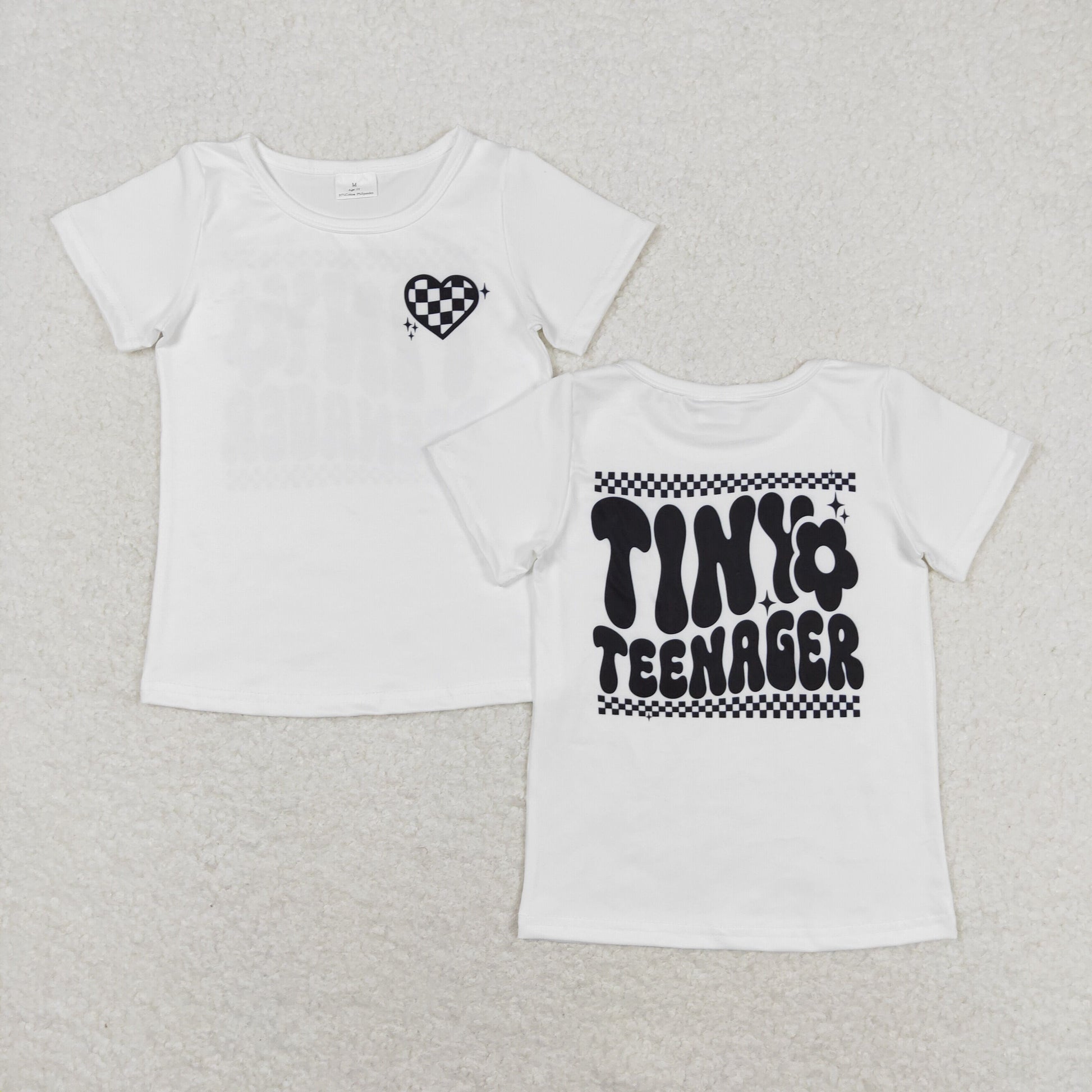 RTS NO MOQ(In Stock) GT0527 tiny teenager black and white plaid love short-sleeved top