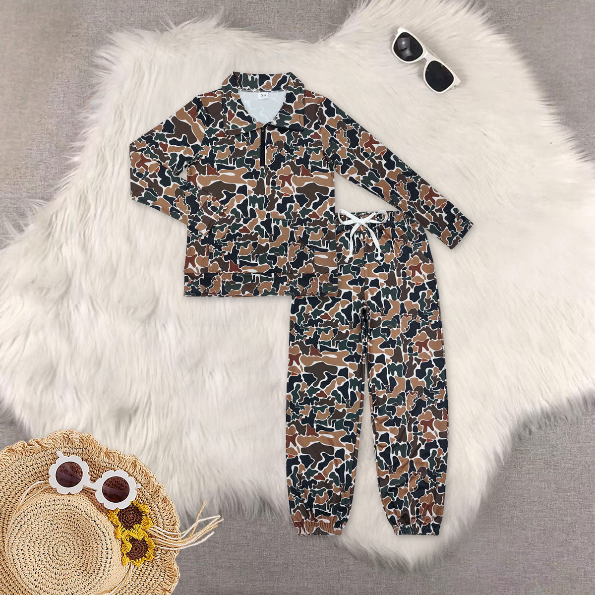 RTS NO MOQ(In Stock) GT0829+P0621 Women's brown, green, and beige camouflage long-sleeved top pants sets